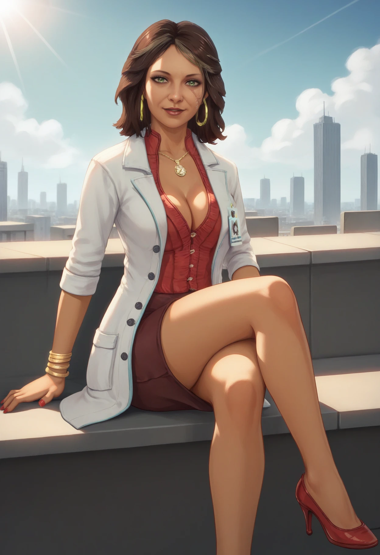 She was 27 in the first one, so maybe about 42? She's a beautiful mature woman.