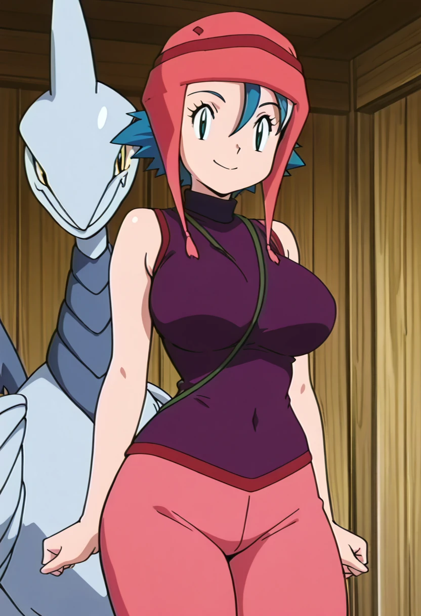 sleeveless shirt, pink headwear, pink pants, Skarmory,