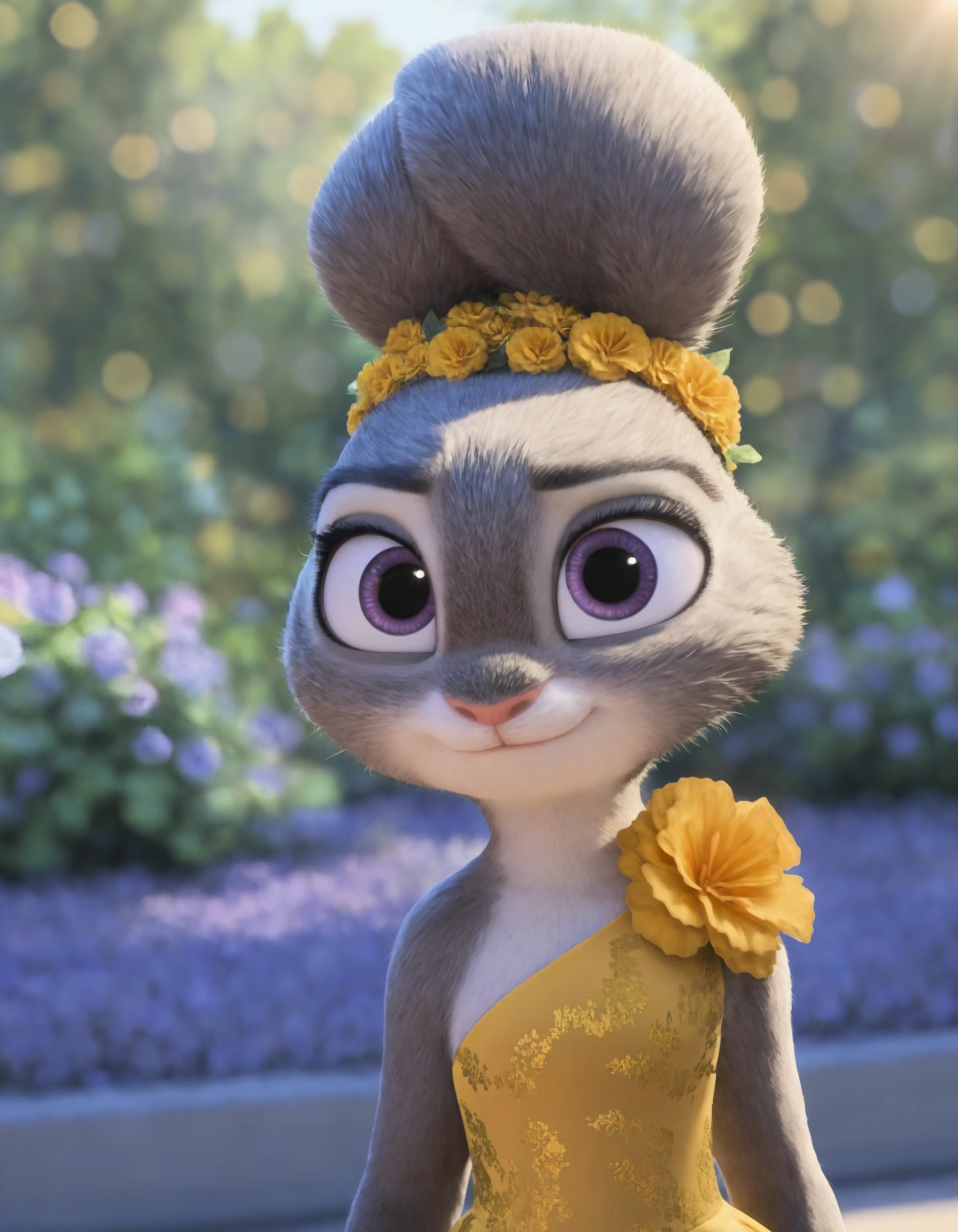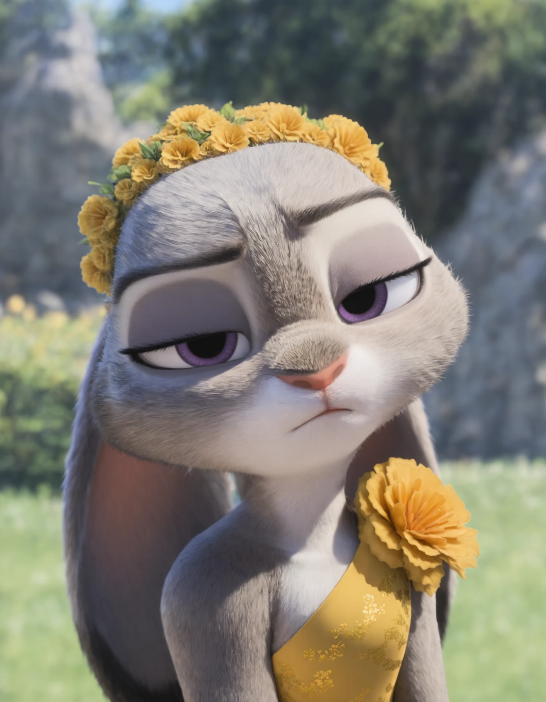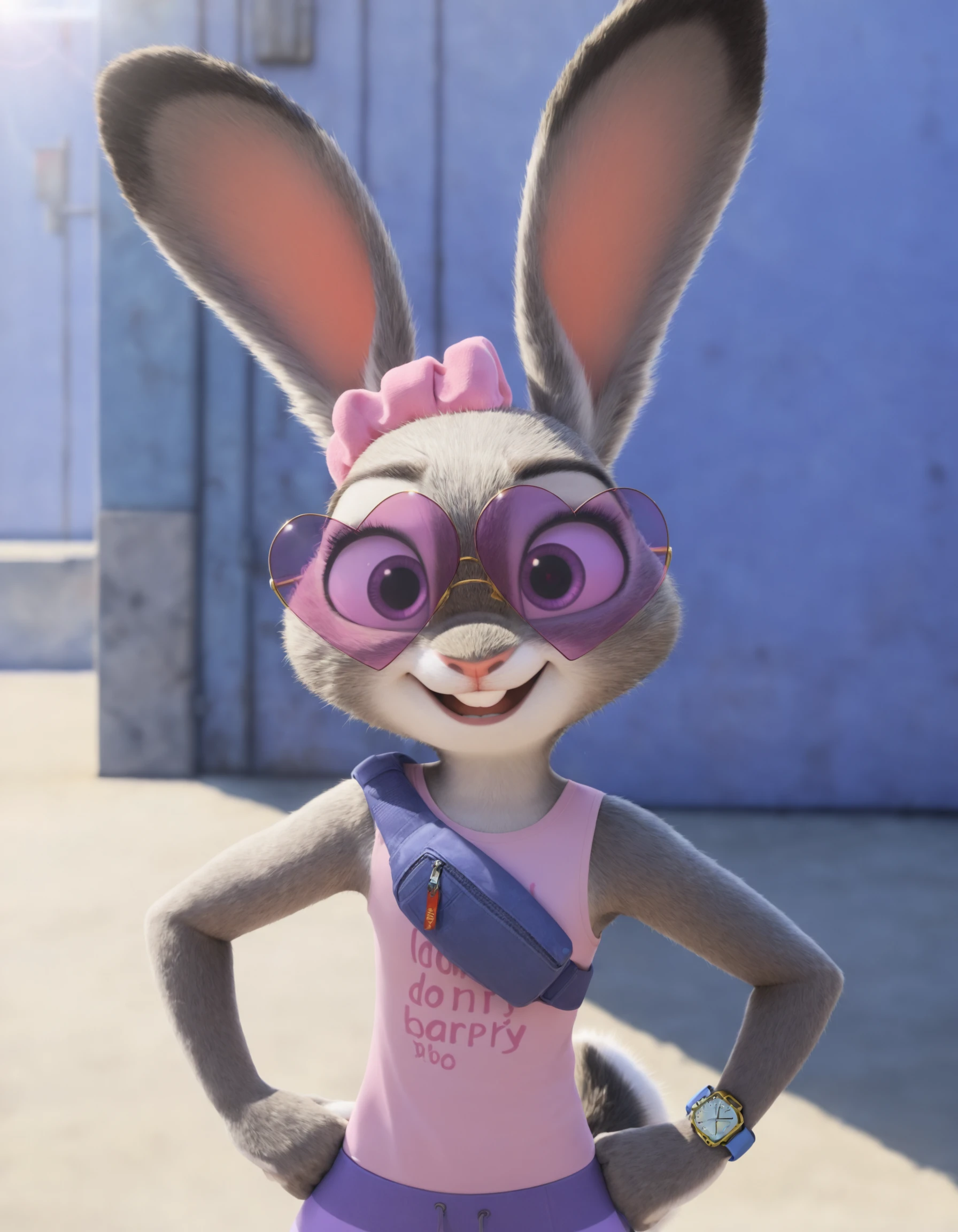 If you want to generate Judy wearing clothes from the movie, you should use this tags: