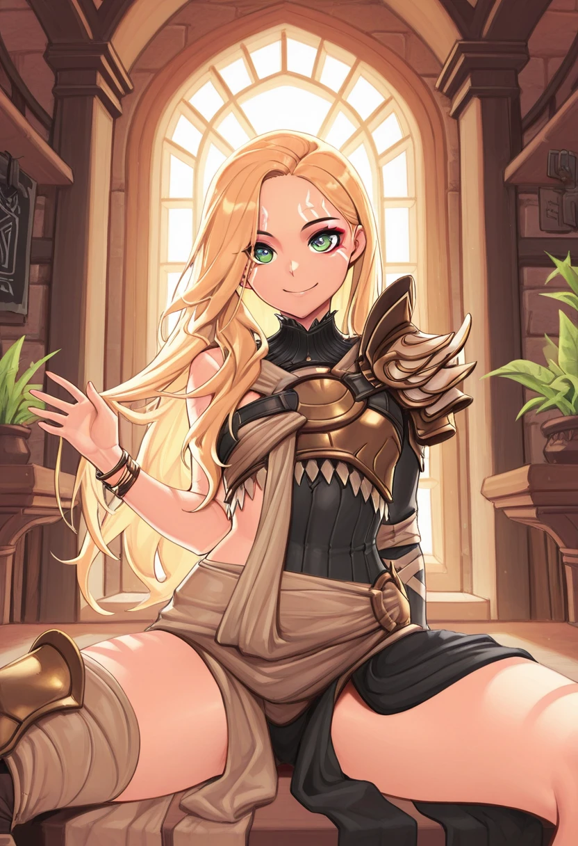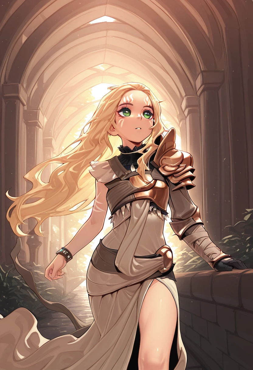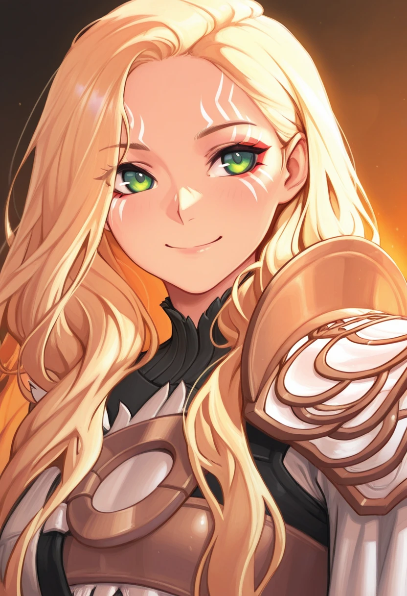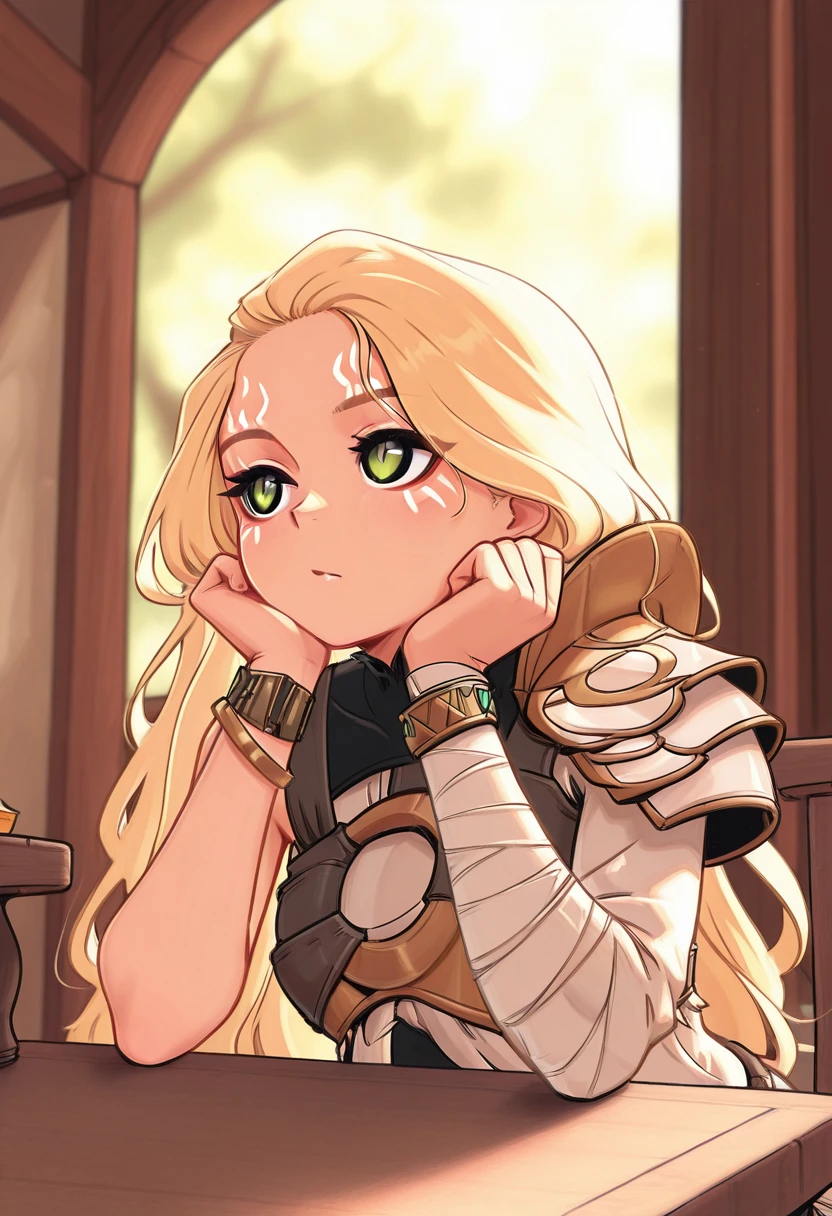 long hair, blonde hair, facial mark,
