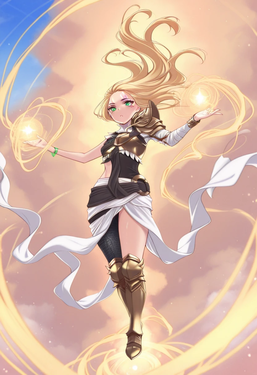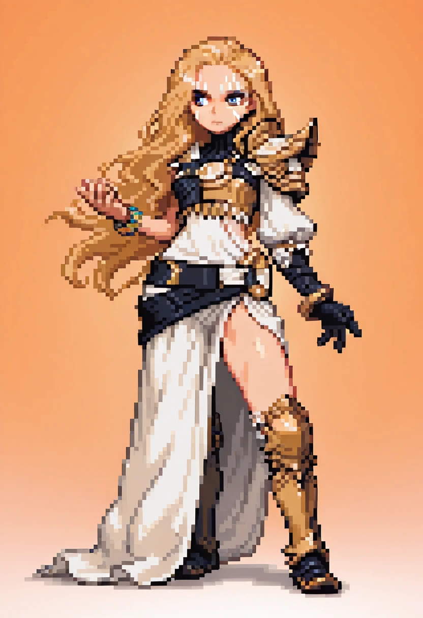 asymmetrical clothes, armor, single shoulder pad, bracelet, armored boots,