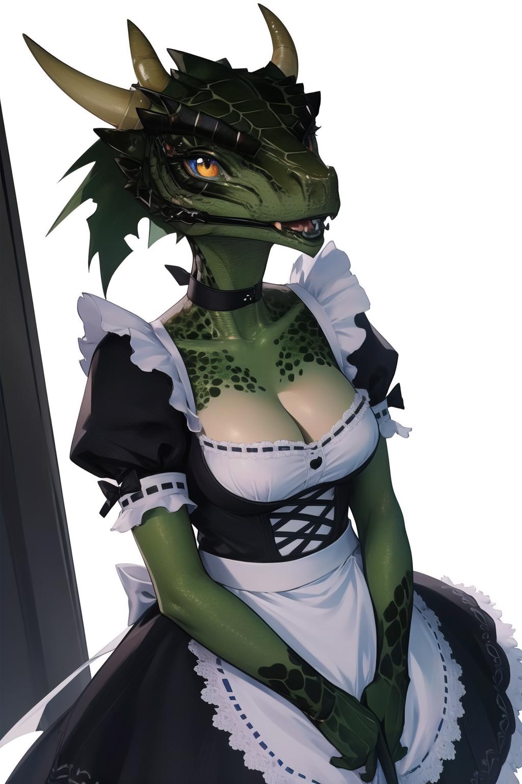 I'm not 100% sure what prompts are the best, but I have been getting good results with: colored skin, green skin, tail, horns, (scales:1.2), (snout, animal nose:1.1)