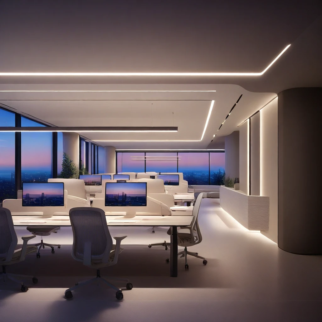 Elevate your generations with effortless luxury: hidden cable tech, curved collaborative zones, smart lighting glows, and spacious productivity vibes 🪑🌞🔗