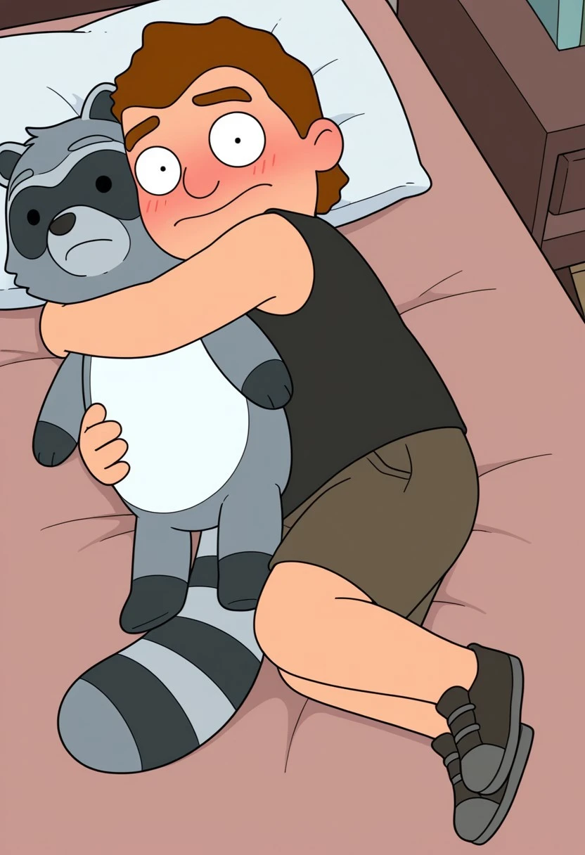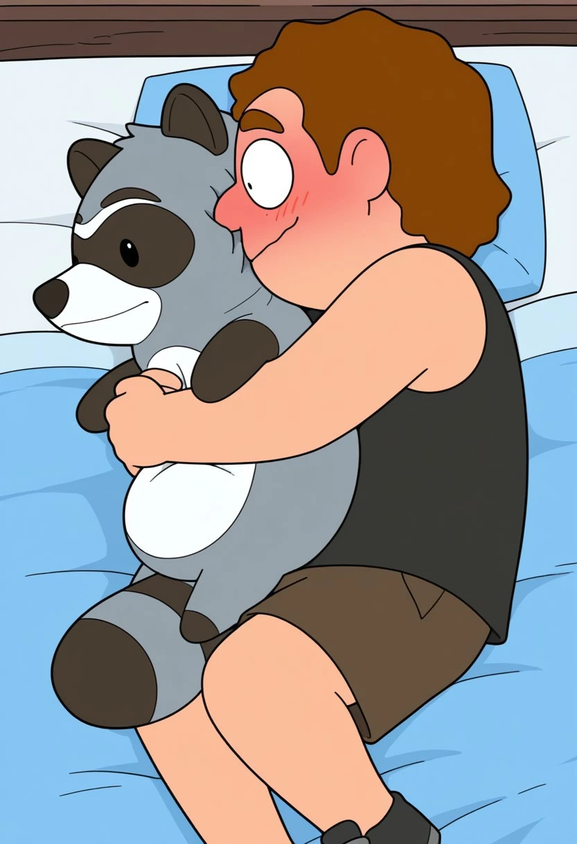 1boy,solo,male focus,Zeke BB,brown hair,short hair,thick eyebrows,huskey body,plump,stocky,black tshirt,sleeveless tshirt,brown shorts,black shoes,