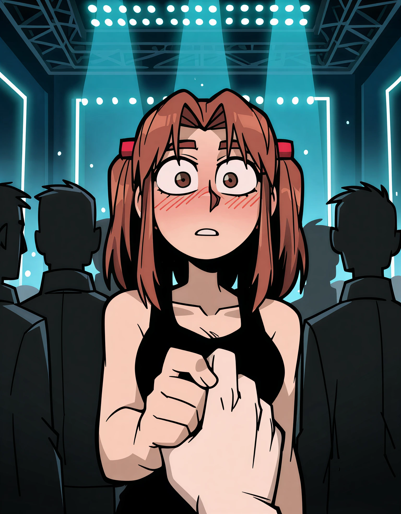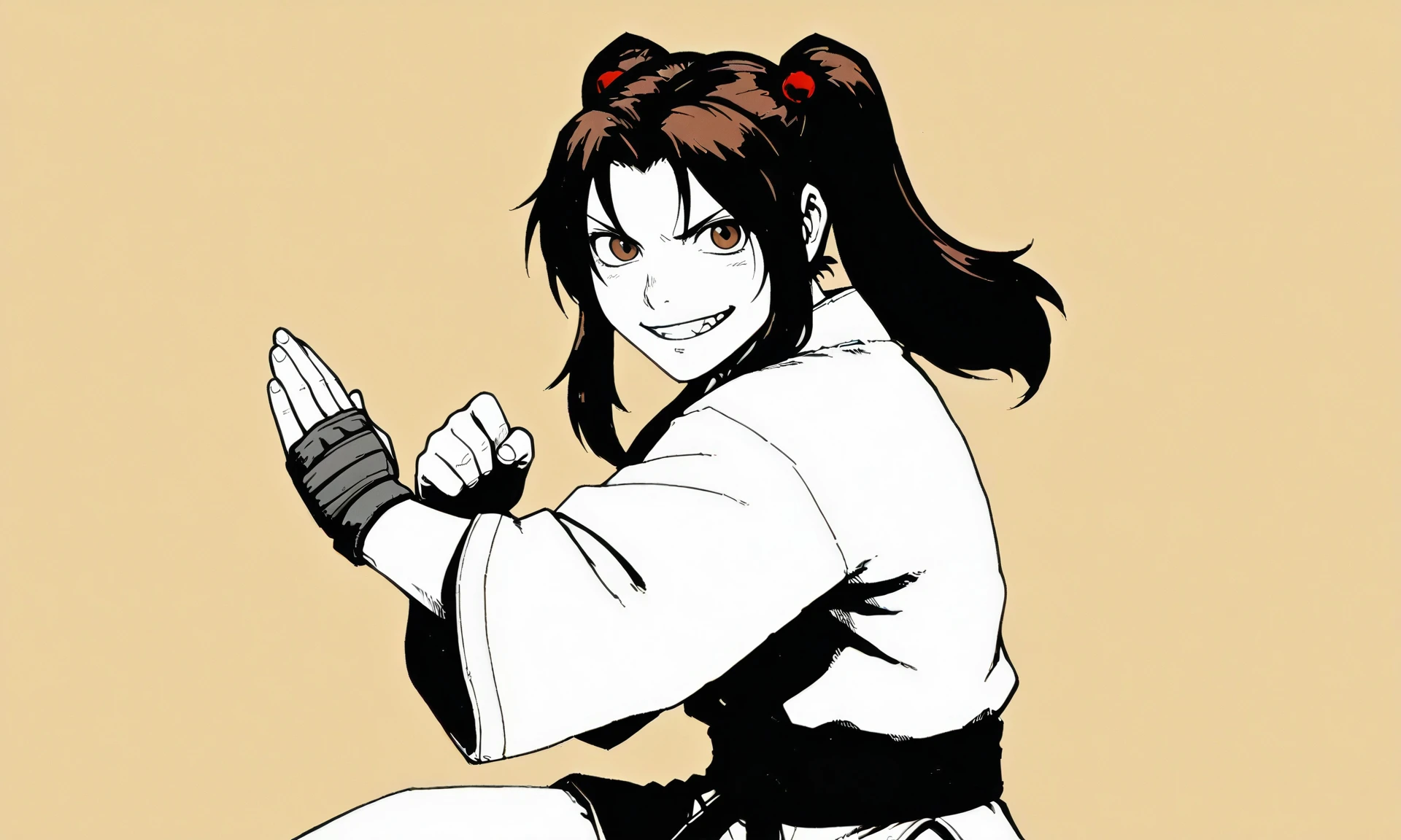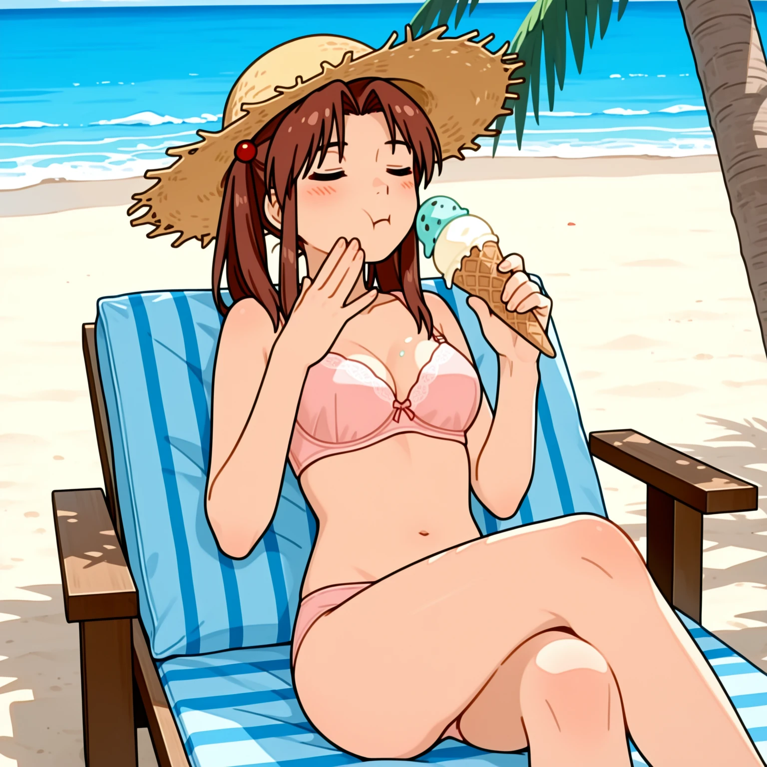 Триггер основной: Uehara, burgundi hair, medium twintail hair, red beads in hair, brown eyes;