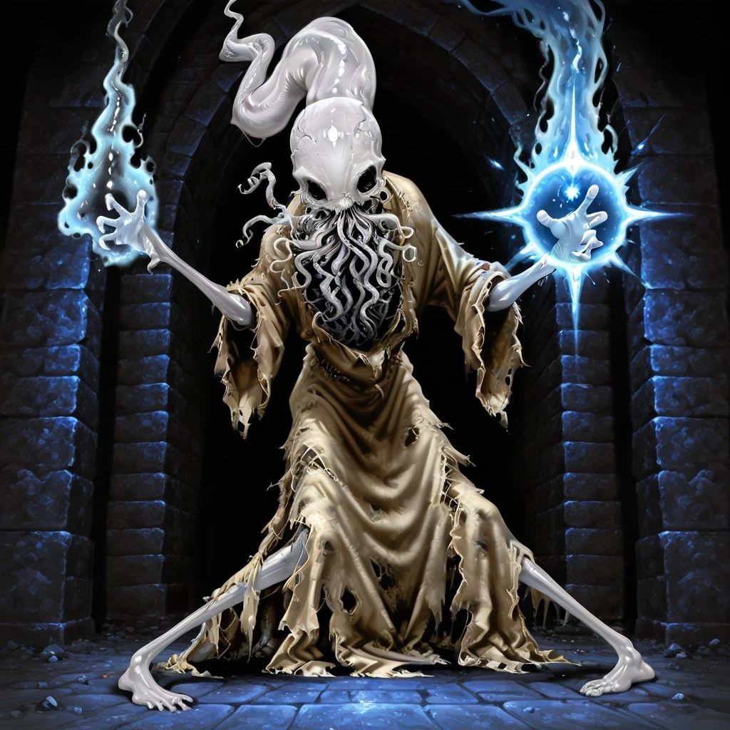 eldritch abomination,white skin,head tentacle,tentacles,no eyes,thin arms,thin legs,