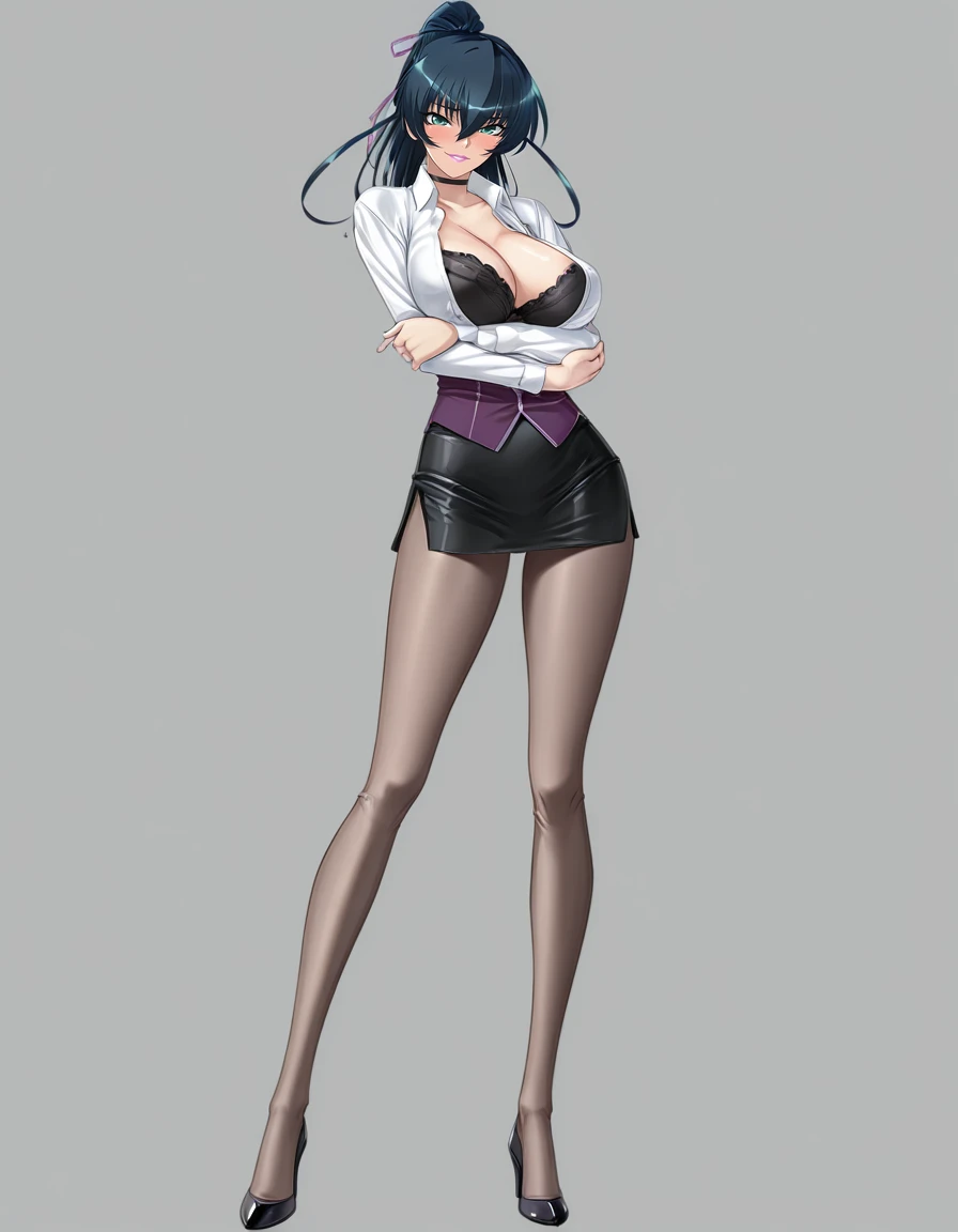 mai_tm_murasaki,long_hair,blue_hair,red_eyes,large_breasts,ninja,dress,bare_shoulders,fishnets,elbow_gloves,thighhighsSakura Igawa 井河 さくら