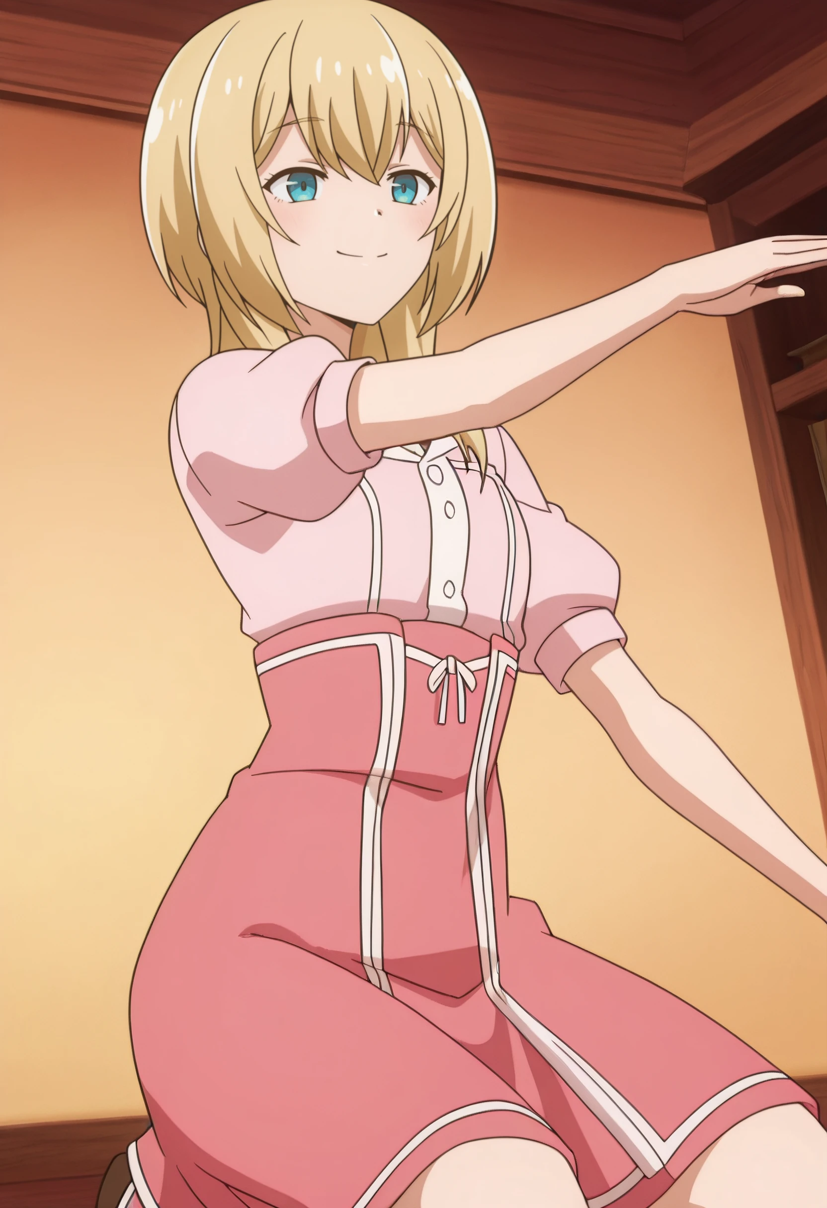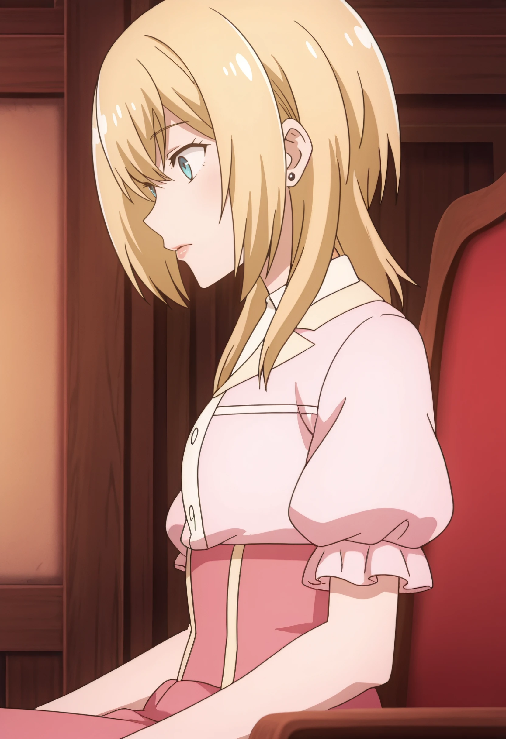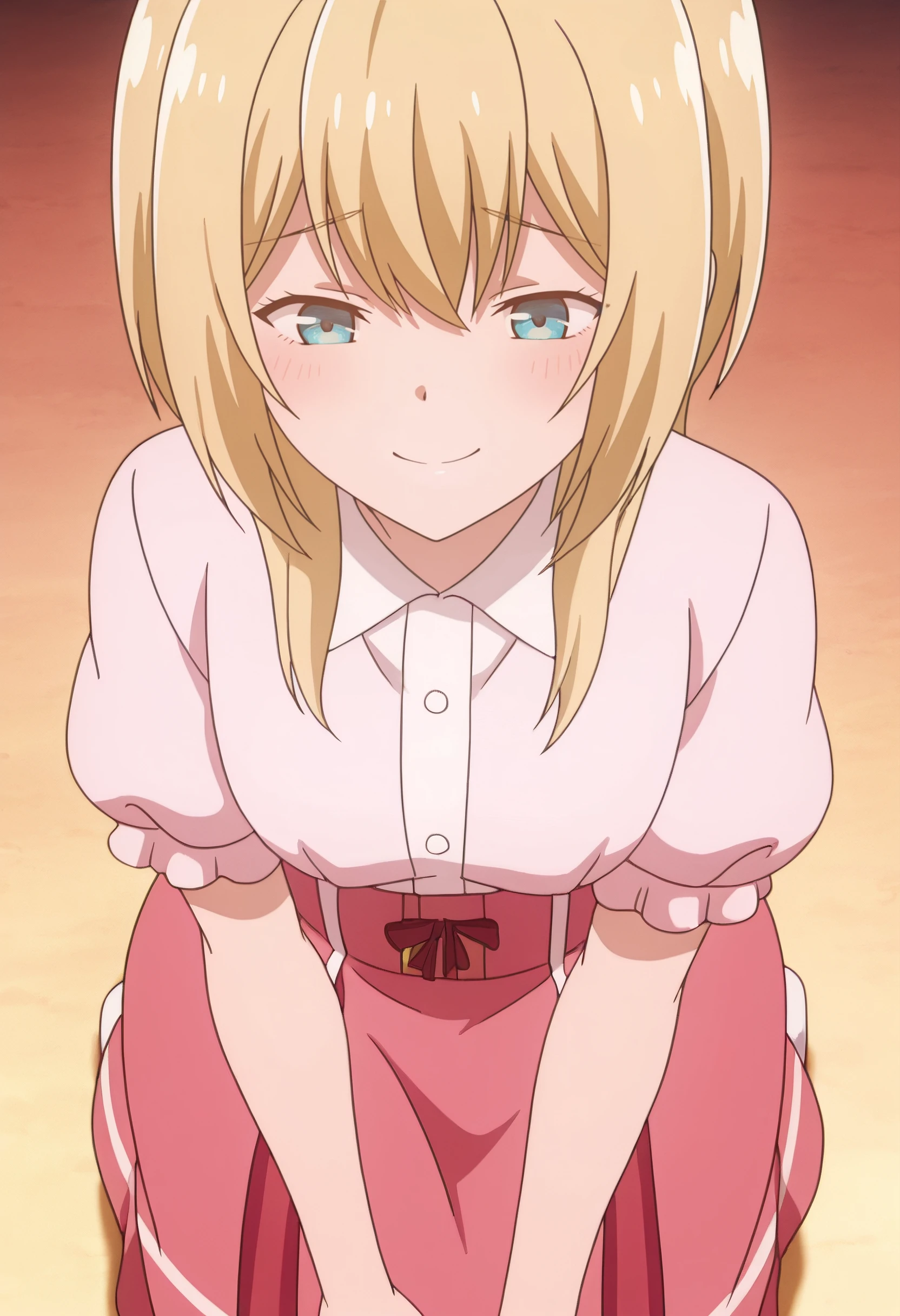 LurieShirt, pink shirt, short sleeves, pink skirt, puffy short sleeves, puffy sleeves, high-waist skirt, dress shirt,