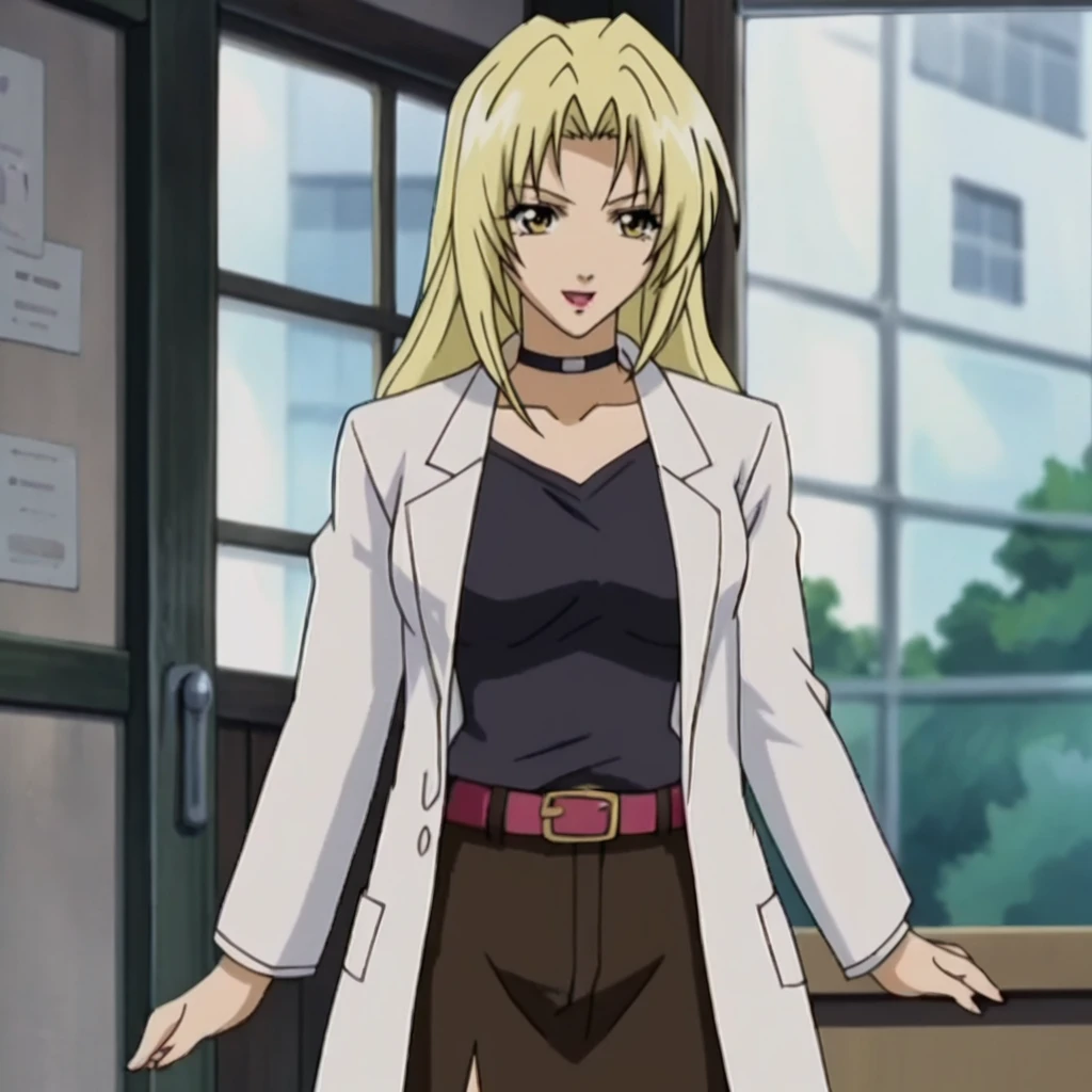 • Trigger with choker: HevnChoker, 1girl, blonde hair, labcoat, long hair, choker, belt, cowboy shot
