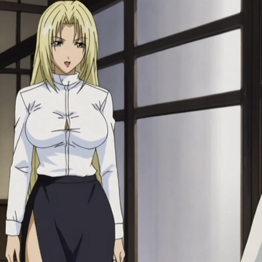 • Trigger with white shirt: HevnWhiteShirt, 1girl, blonde hair, turtleneck, long skirt, large breasts, black side slit, long sleeves, cowboy shot