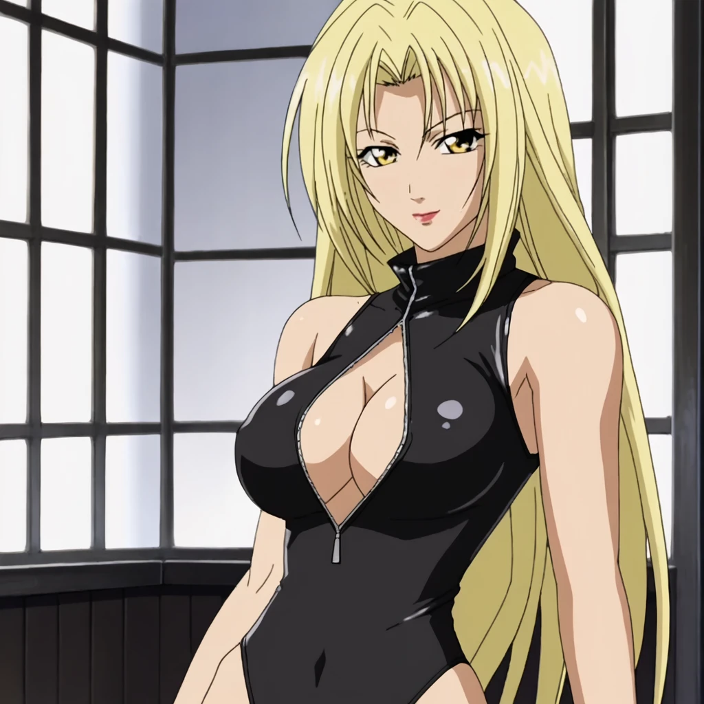 • Trigger with bodysuit: HevnBodysuit, 1girl, blonde hair, yellow eyes, bodysuit, belt, cowboy shot