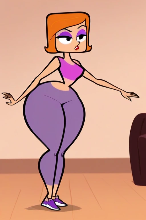 purple yoga pants, pink crop top,shoes