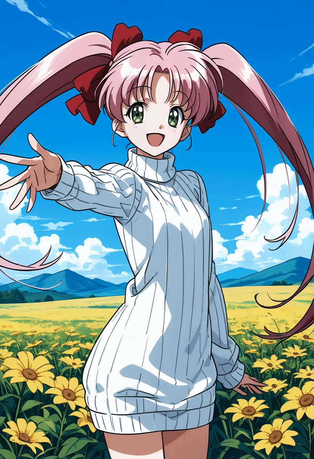 Trigger word: vg_manami, green eyes, pink hair, long hair, twintails, hair ribbon,