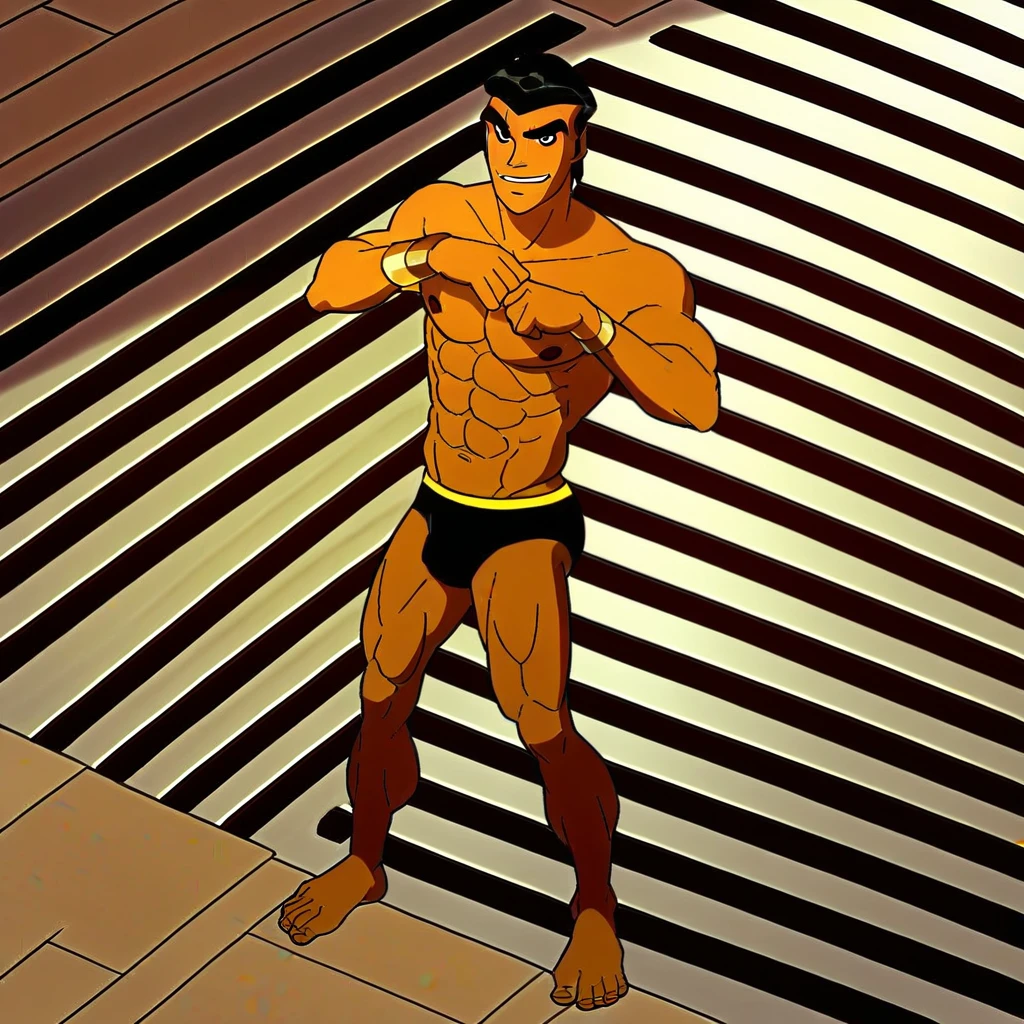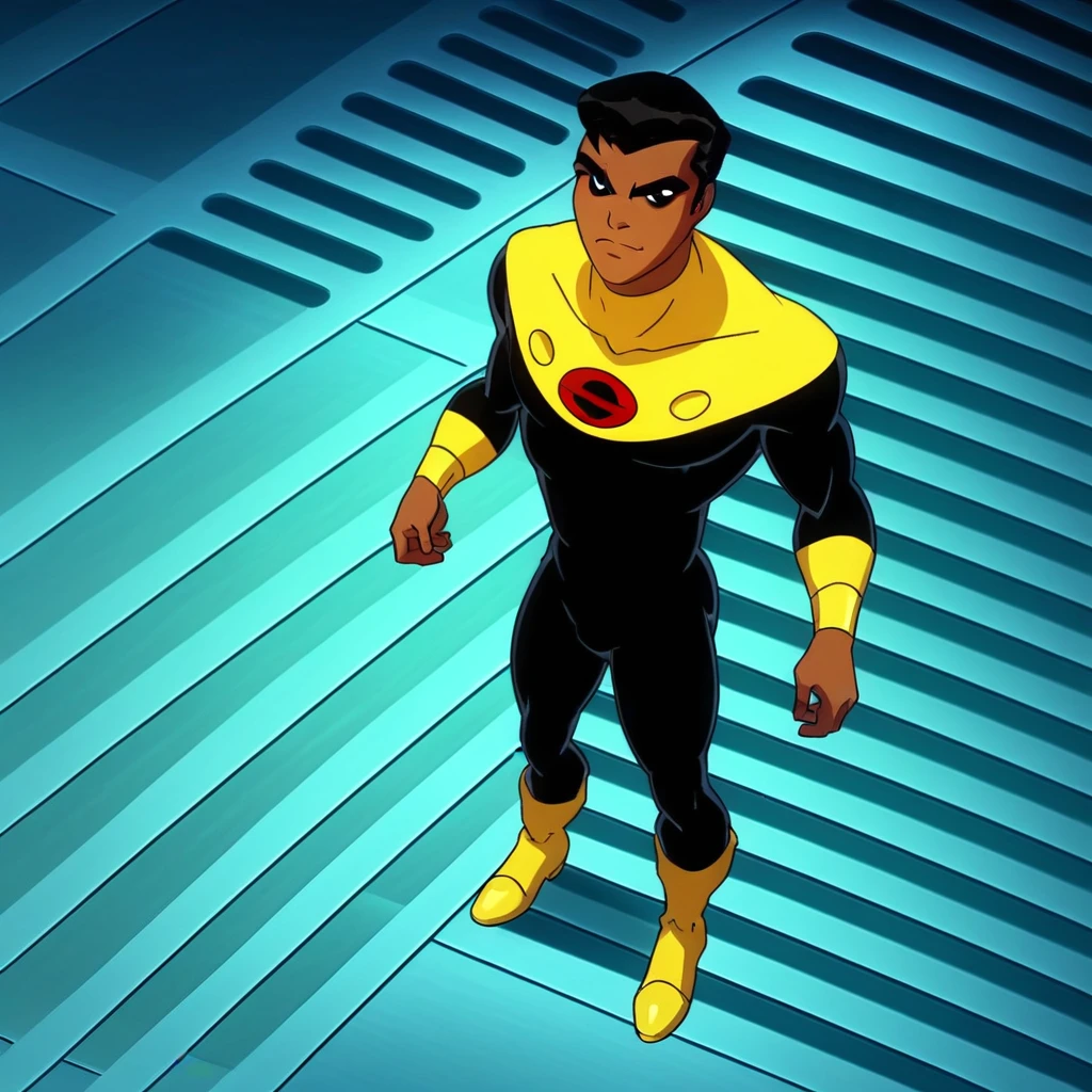 Captain Super, 1boy, solo, male focus, dark-skinned male, dark skin, black hair, thick eyebrows, black eyes,