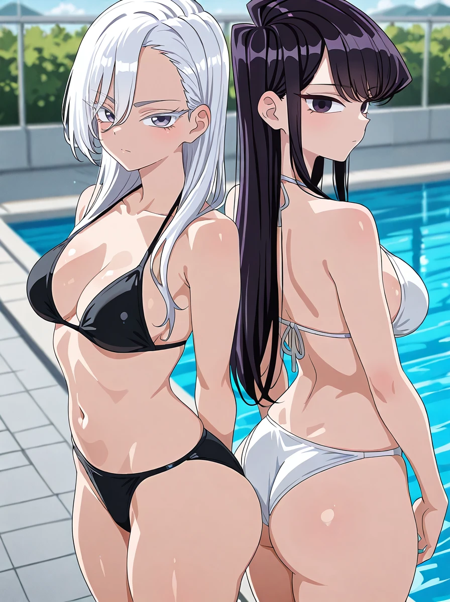 Prompts: 1girl, long hair, solo, white hair eyelashes, school uniform, pleated skirt, serious black_jacket, long sleeves, looking at viewer,