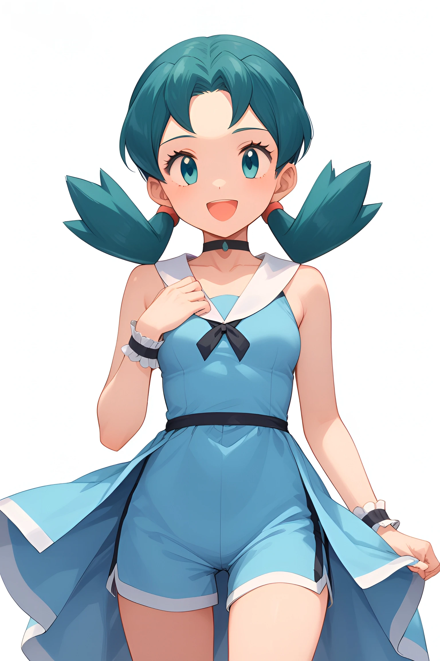 official alternate costume, dress, shorts under dress, wrist cuffs, choker,hair ornament, side slit, shorts