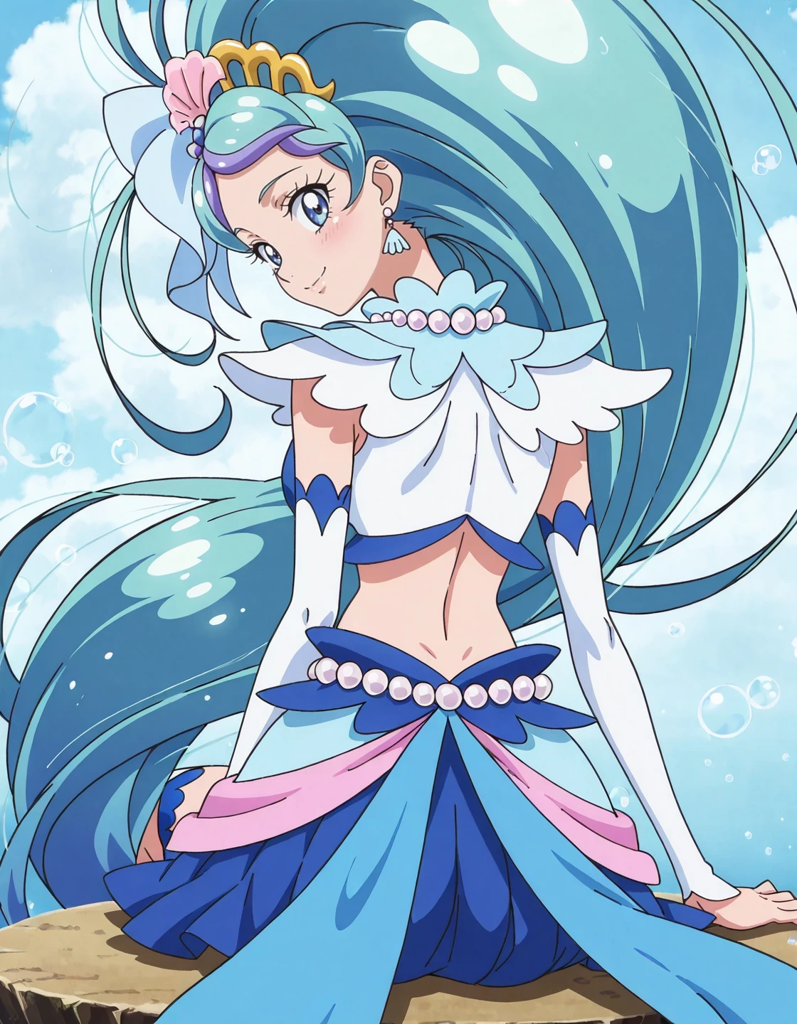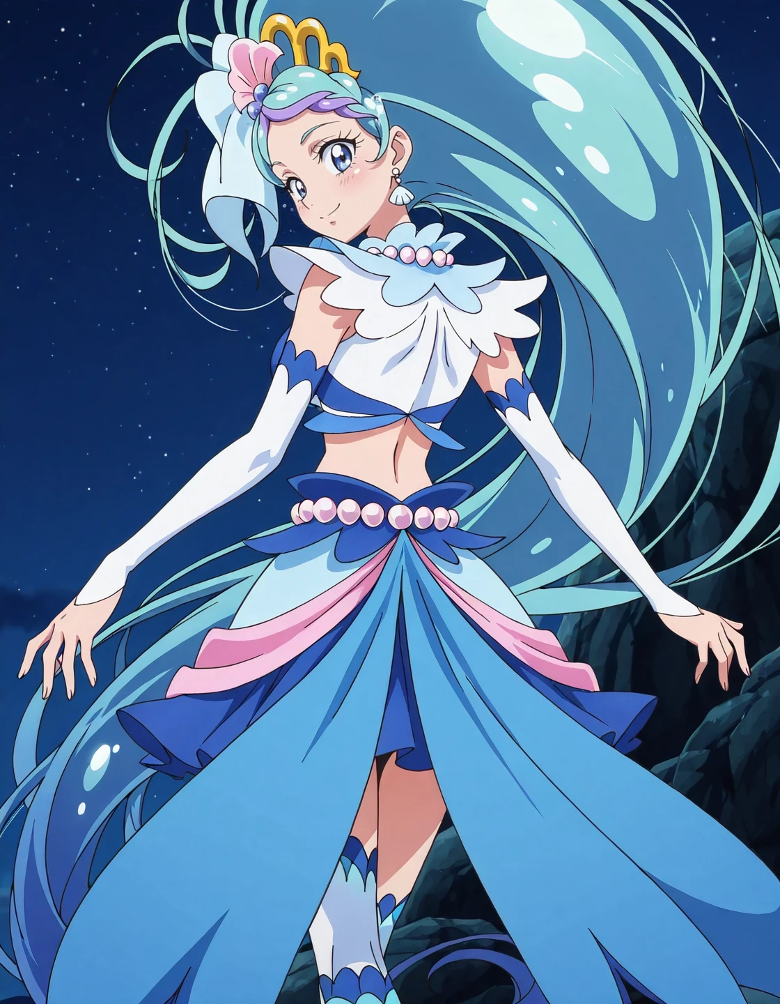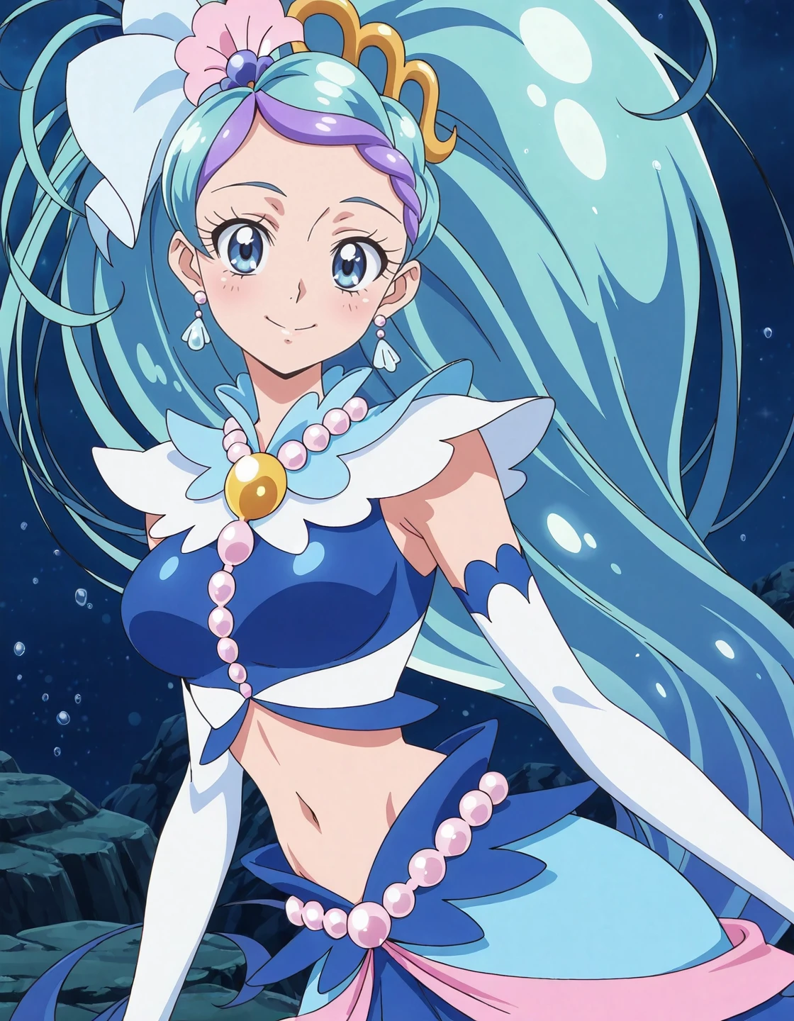 anime screencap,solo,1girl,curemermaid,mermaidcostume,<lora:curemermaid_IL:0.8>,high definition,amazing quality,best quality,very aesthetic,masterpiece,absurdres,