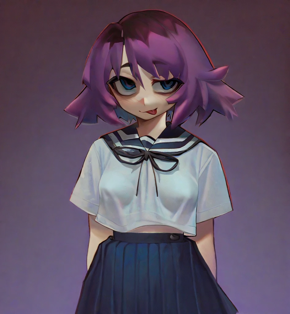 To get even closer to v1v404 style, add "nose" to the negatives. Pony likes to add realistic noses to characters.