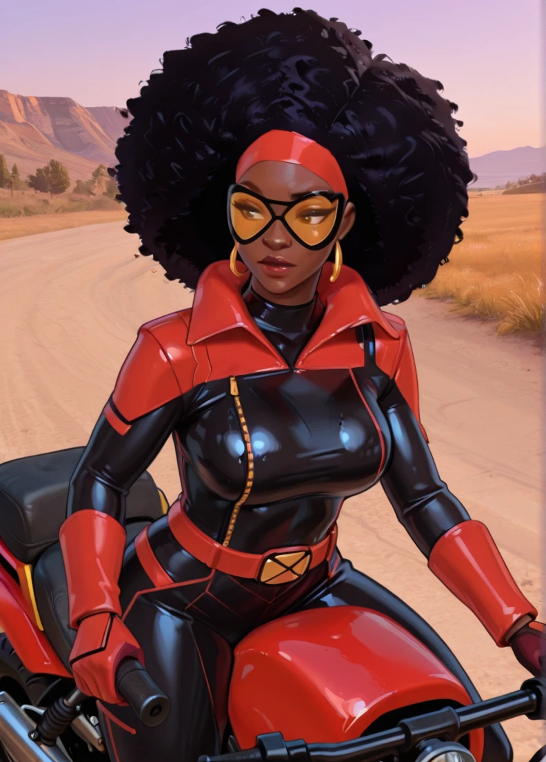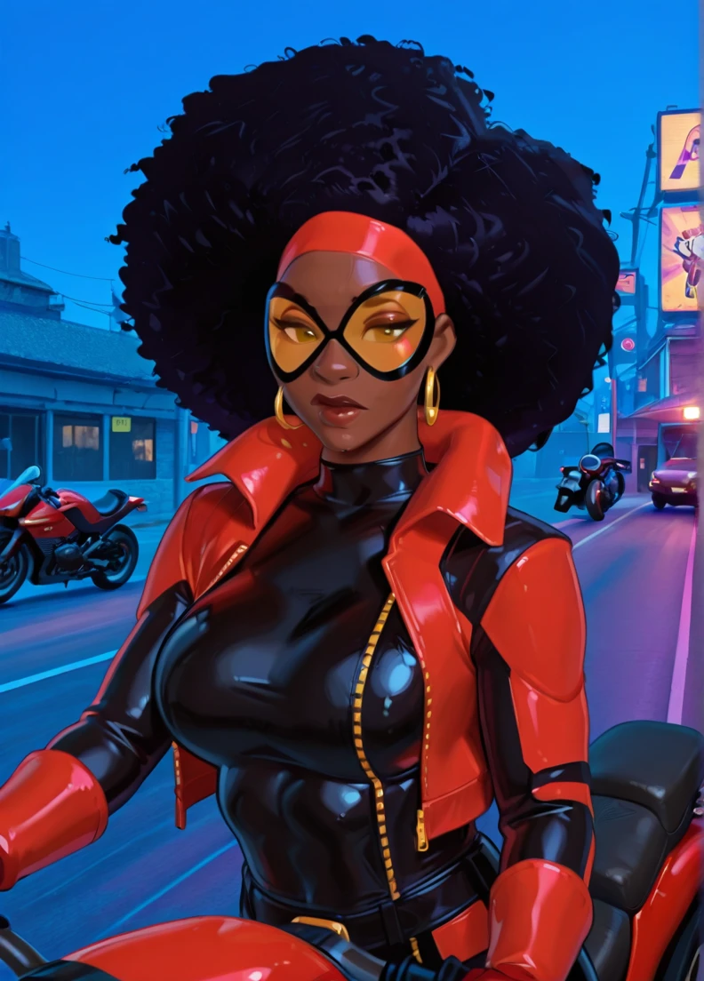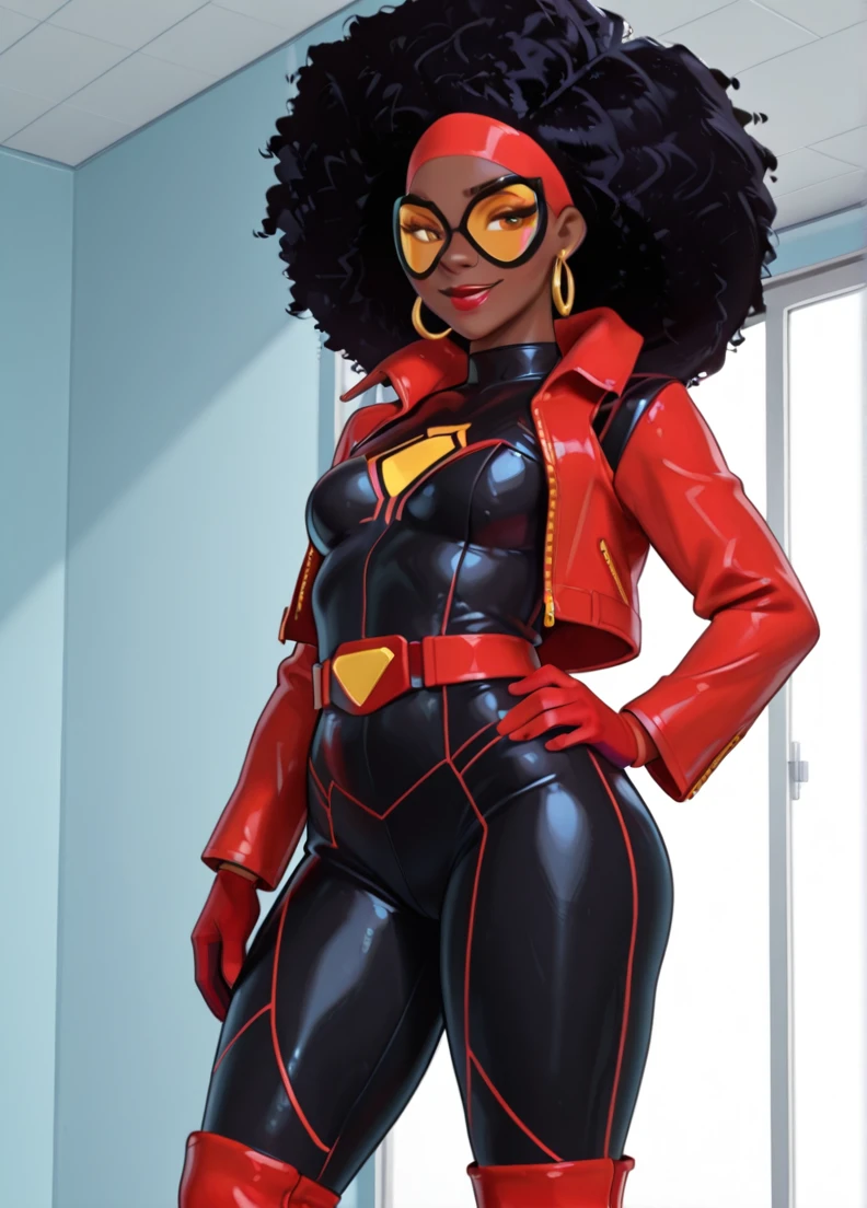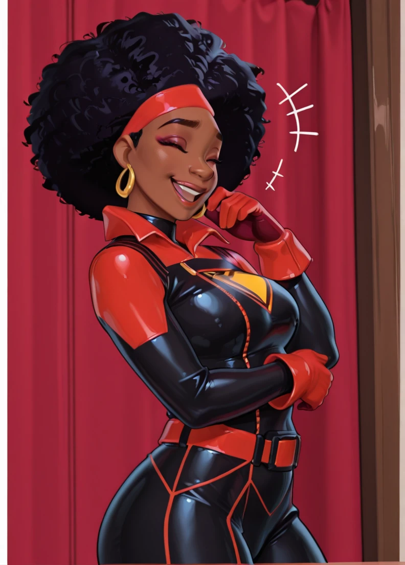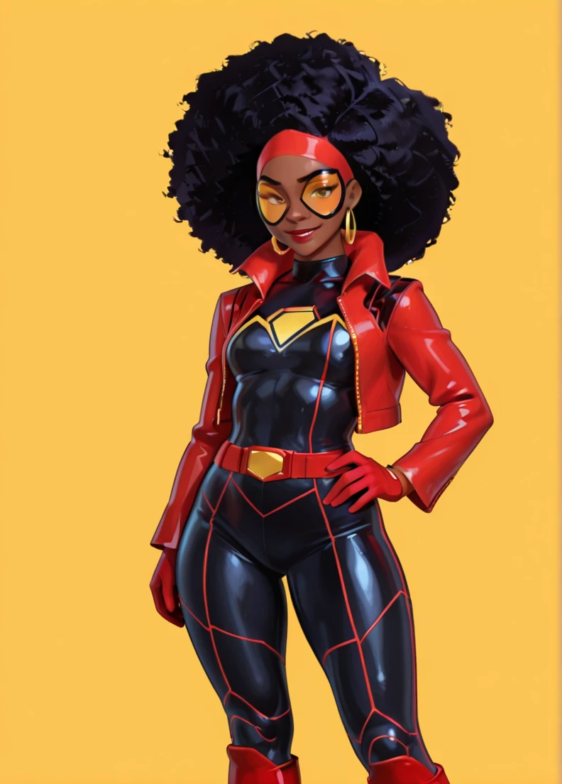 afro, dark-skinned female, black hair, brown eyes,