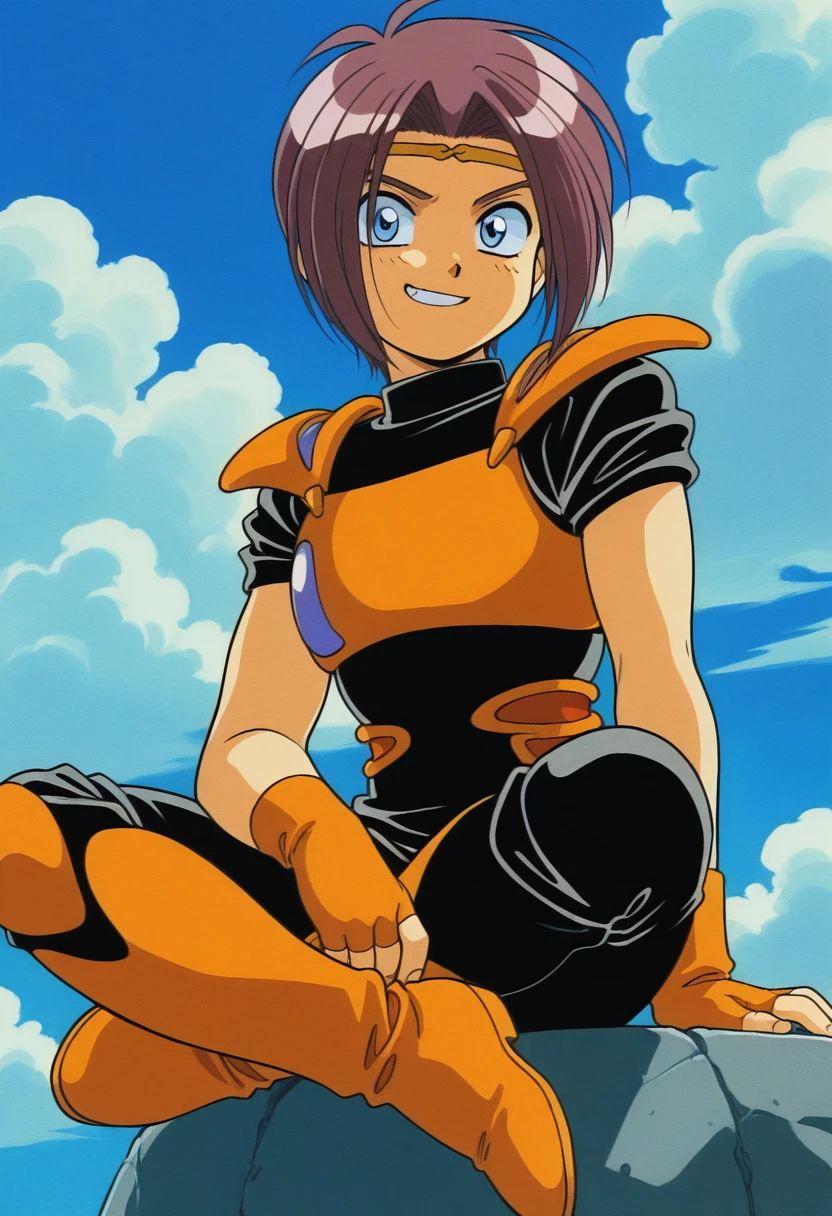 black short sleeves shirt under orange armor