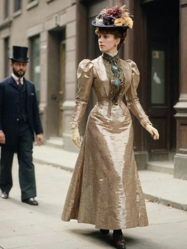 I am doing a whole series of dresses and gown of the Belle Epoque period from approx. 1880 to 1914. This is the first one, which was trained on dresses and photographs from 1905-1909. The model is very flexible and creates all kinds of dresses with very little prompting. Full strength works pretty well.