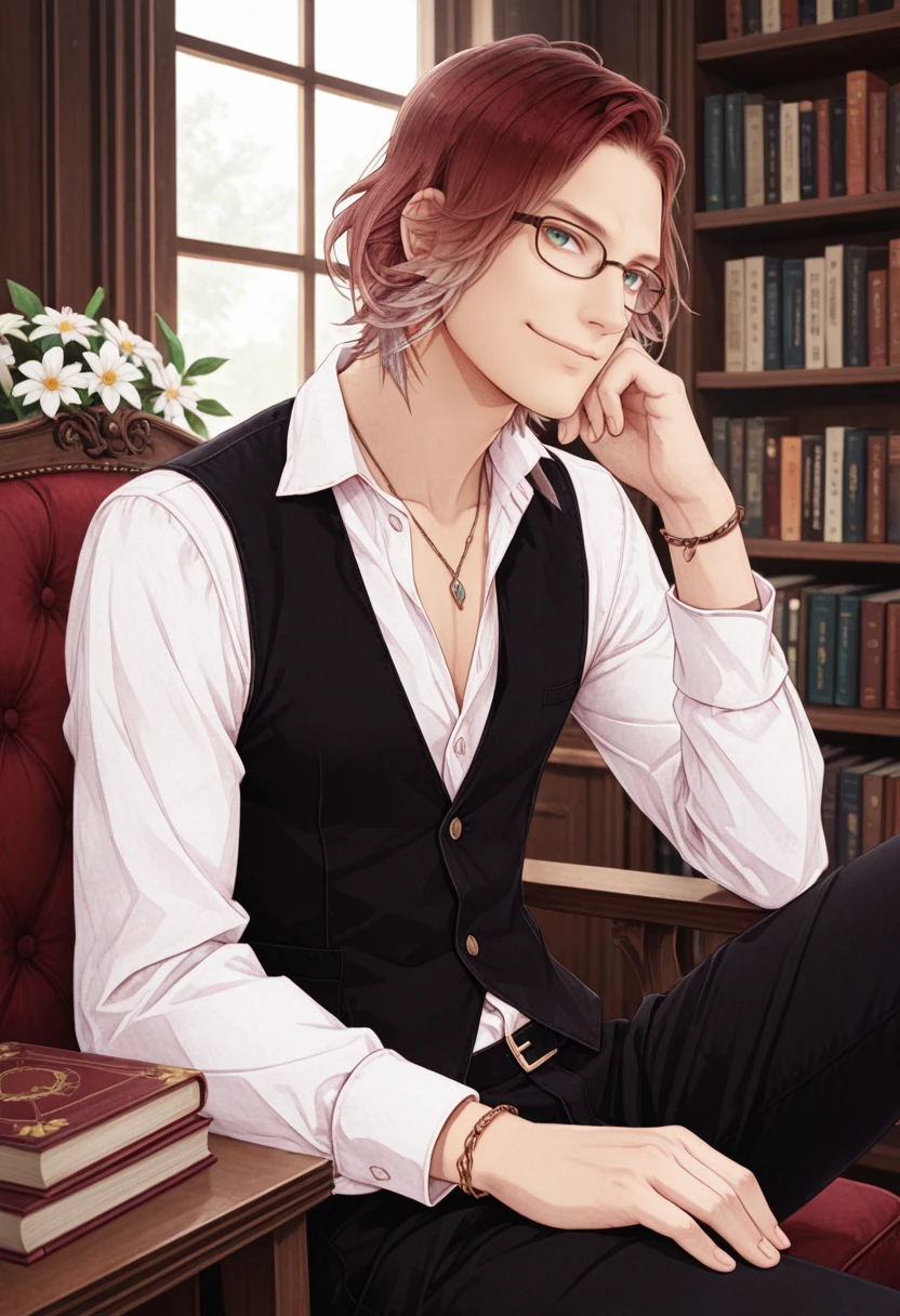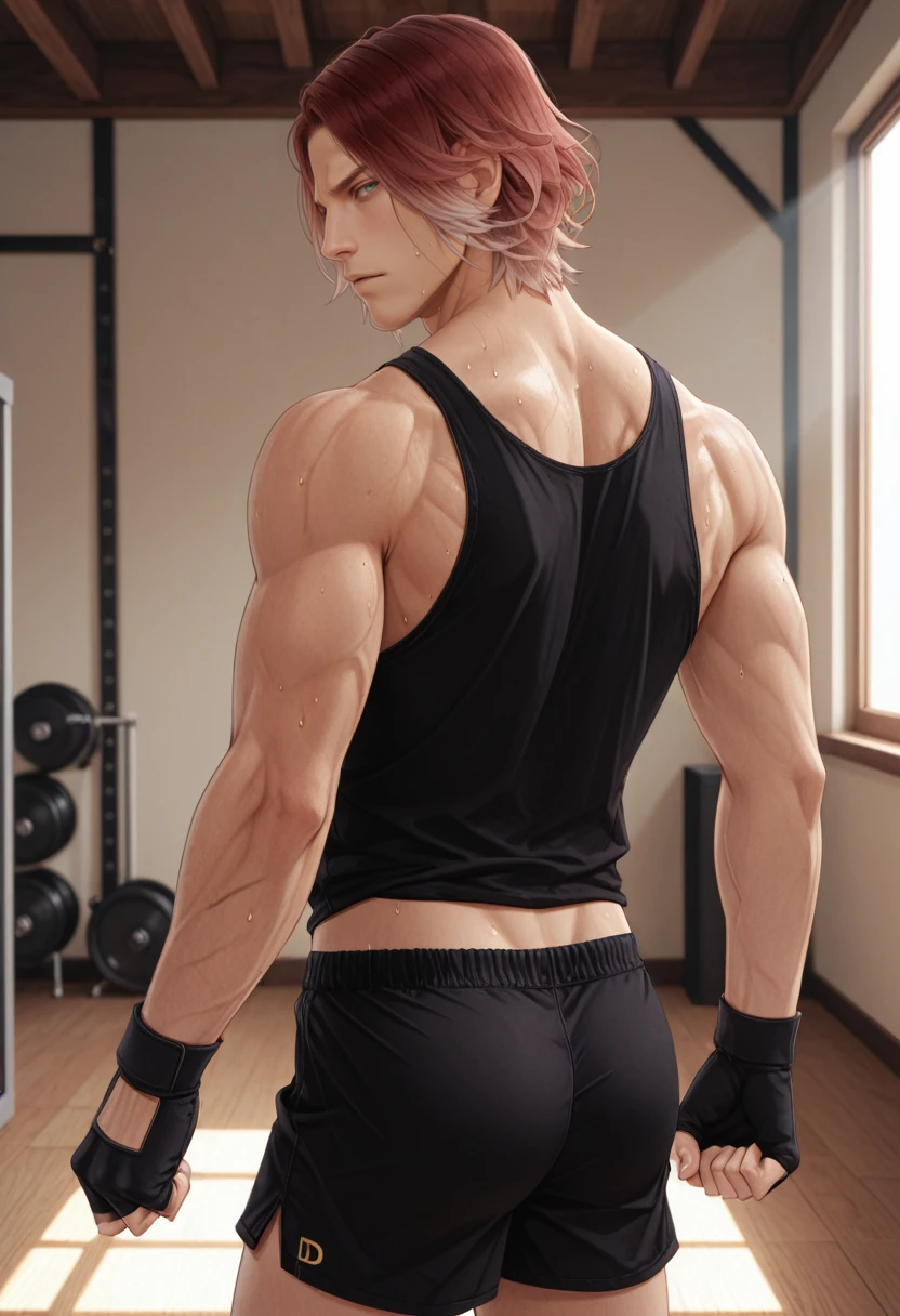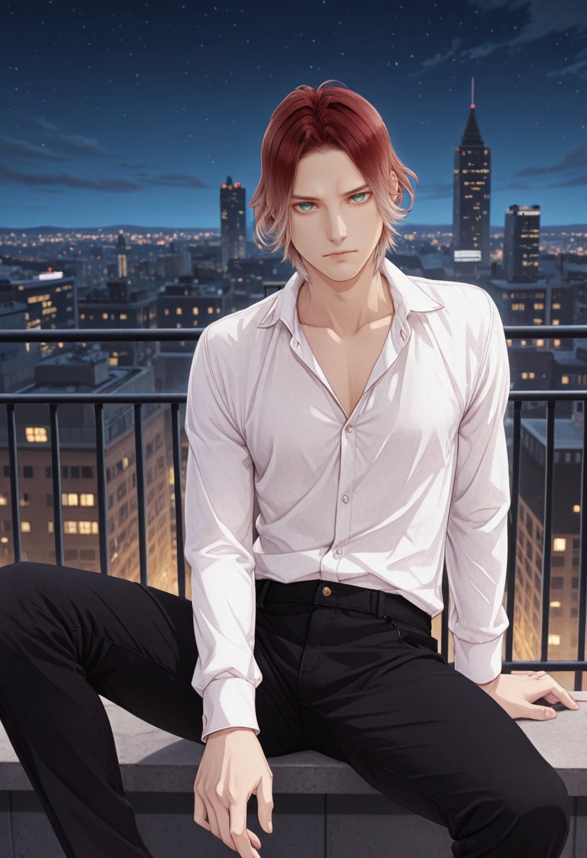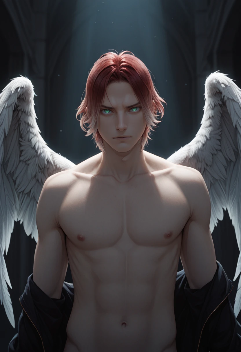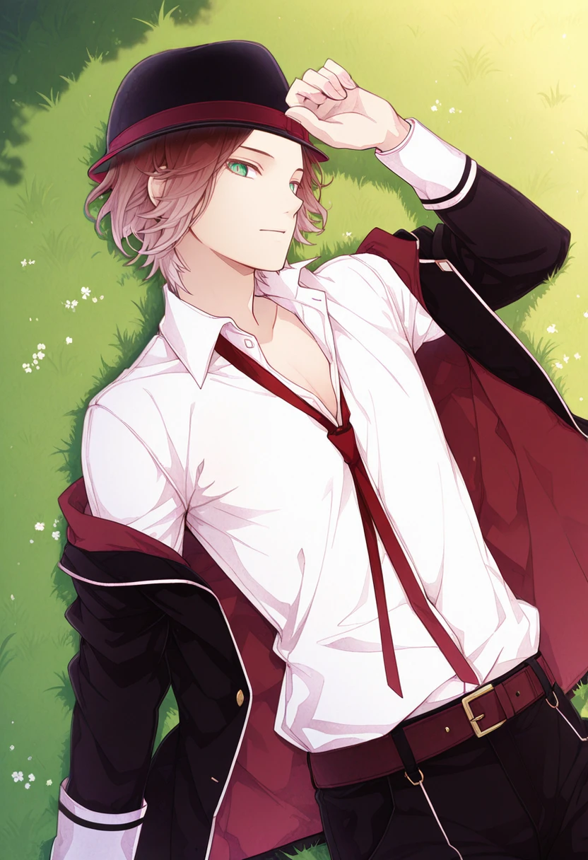 DBLaito, 1boy, male focus, green eyes, red hair, multicolored hair, hat