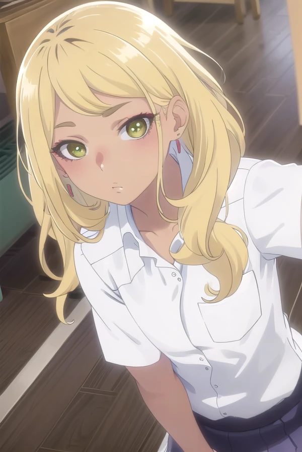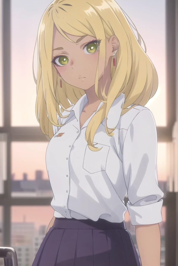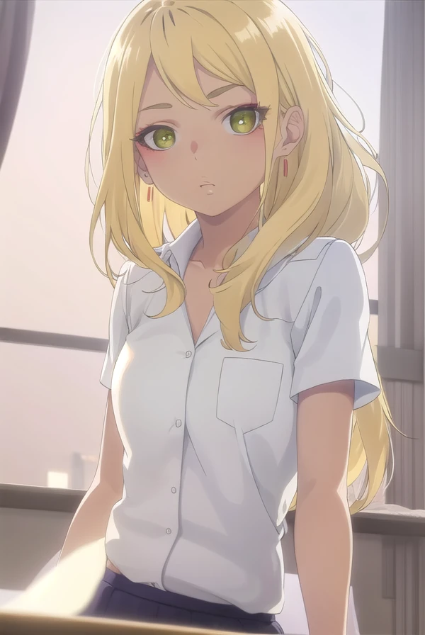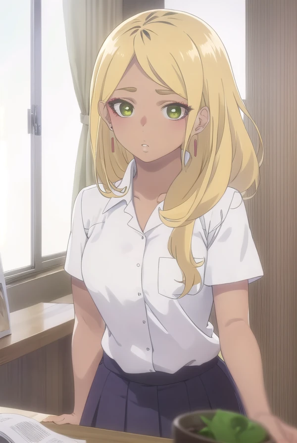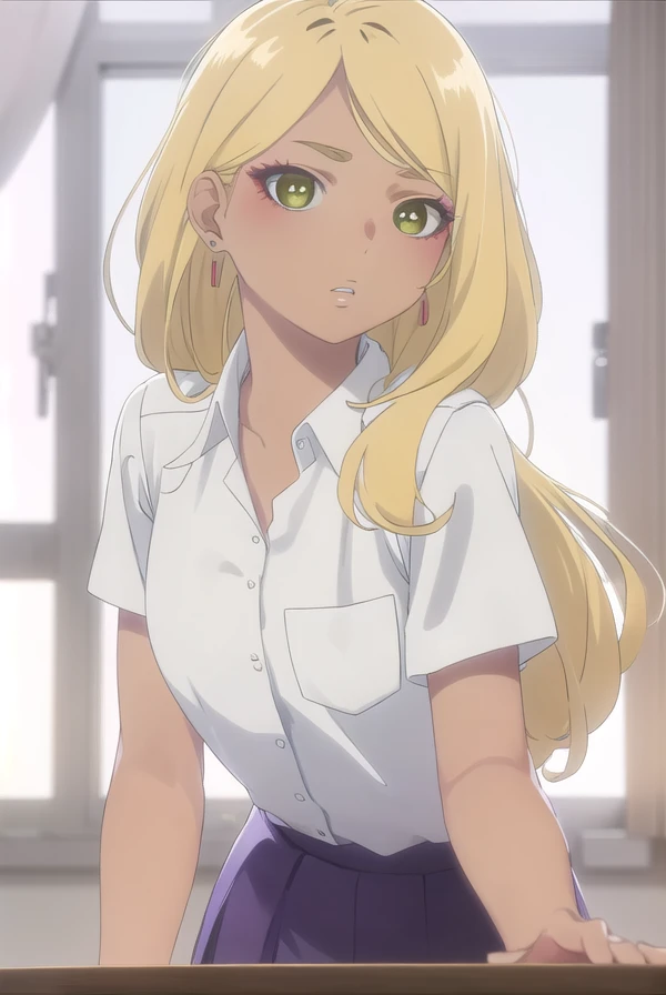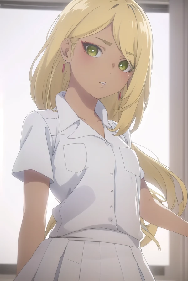 sonoe juujou, long hair, blonde hair, (green eyes:1.3), dark skin, dark-skinned female,