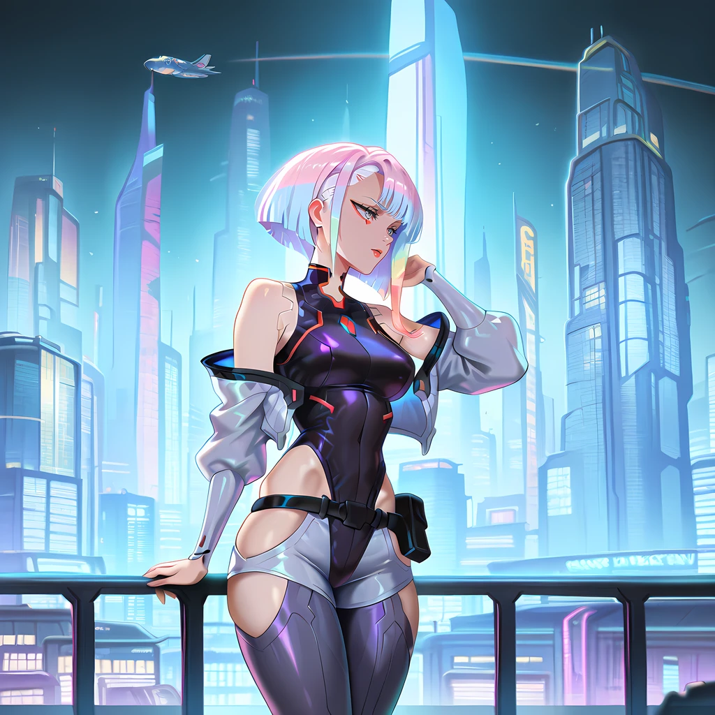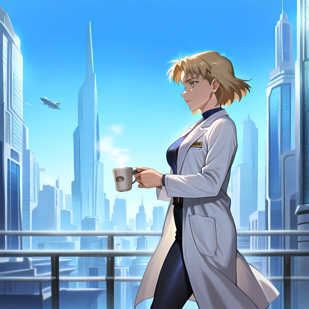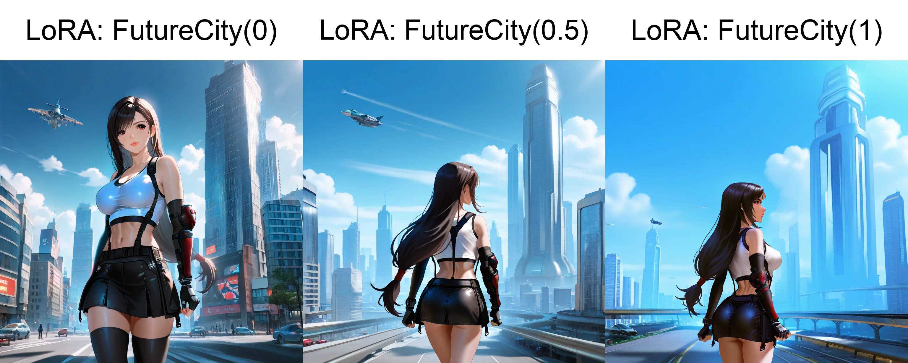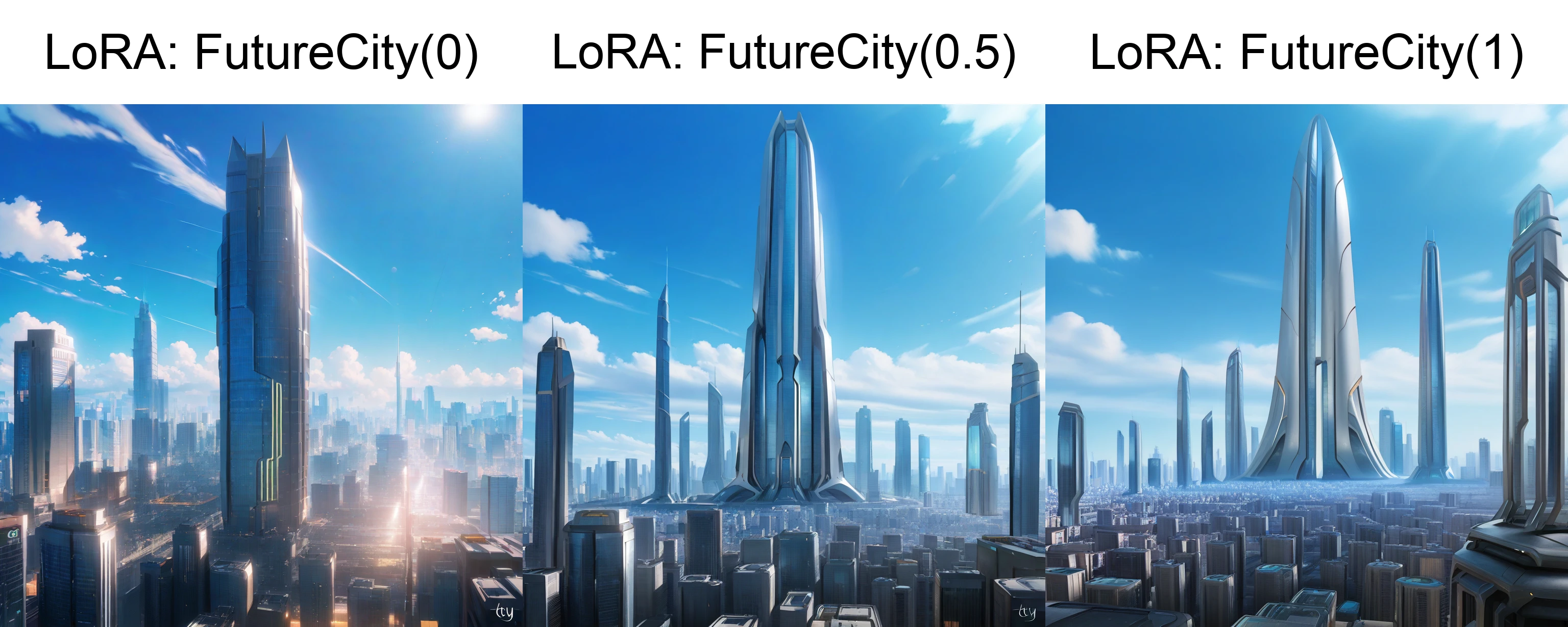 Addi tonal: building, outdoors, skyscraper, cityscape, city, blue sky, science fiction, aircraft