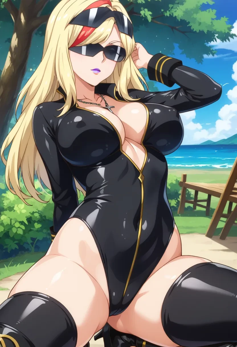 sunglasses, black bodysuit, clothes cutout, leotard,Have fun :D