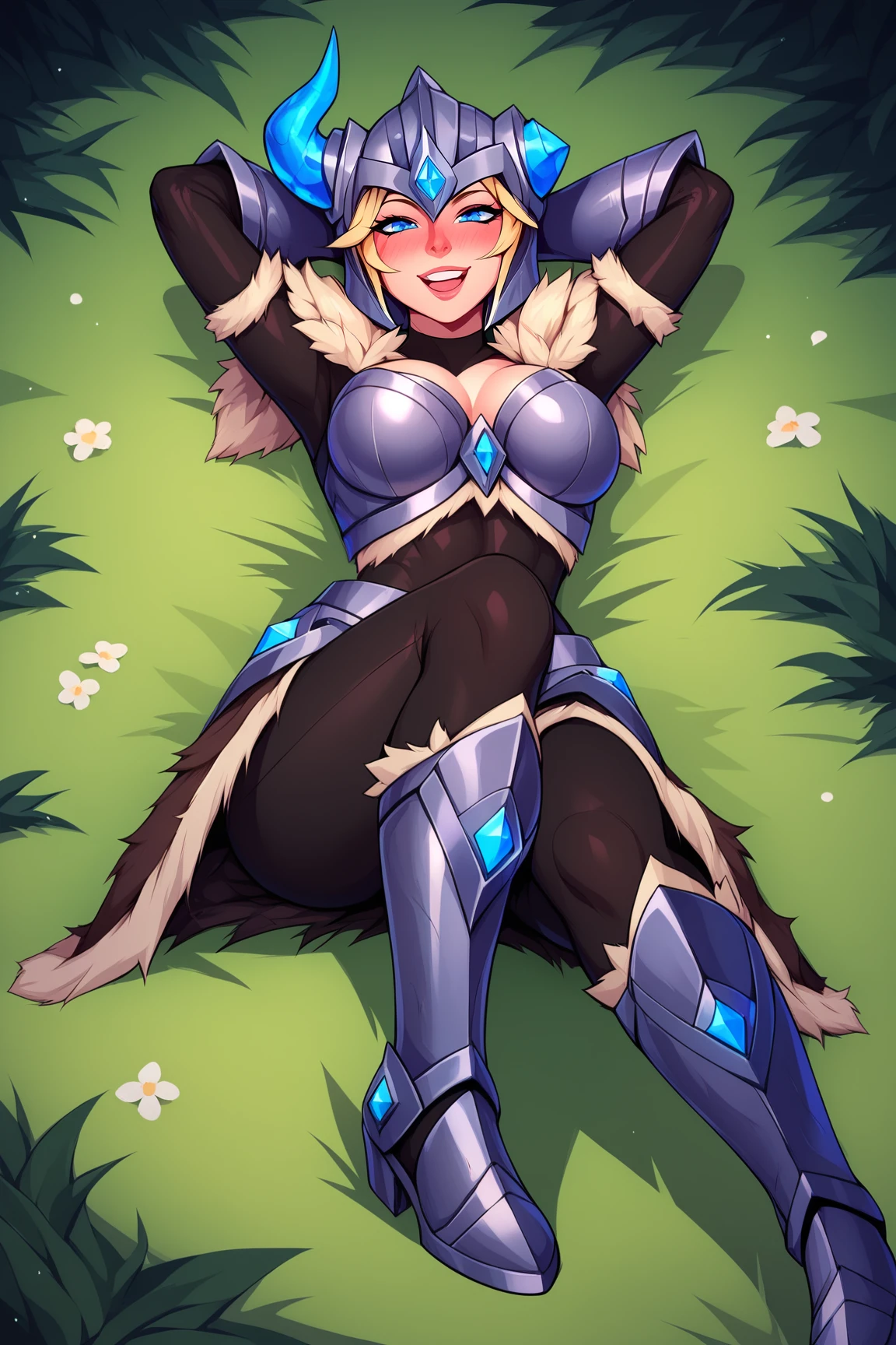 ➜ SejuaniLoLXL, blue eyes, blonde hair, short hair, horned helmet, medium breasts, fur trim, armor, black bodysuit, shoulder armor, breastplate, guantlets, black elbow gloves, skirt, black pants, greaves, armored boots]--|======[ 💗 My Settings: 💗 ]======|--[