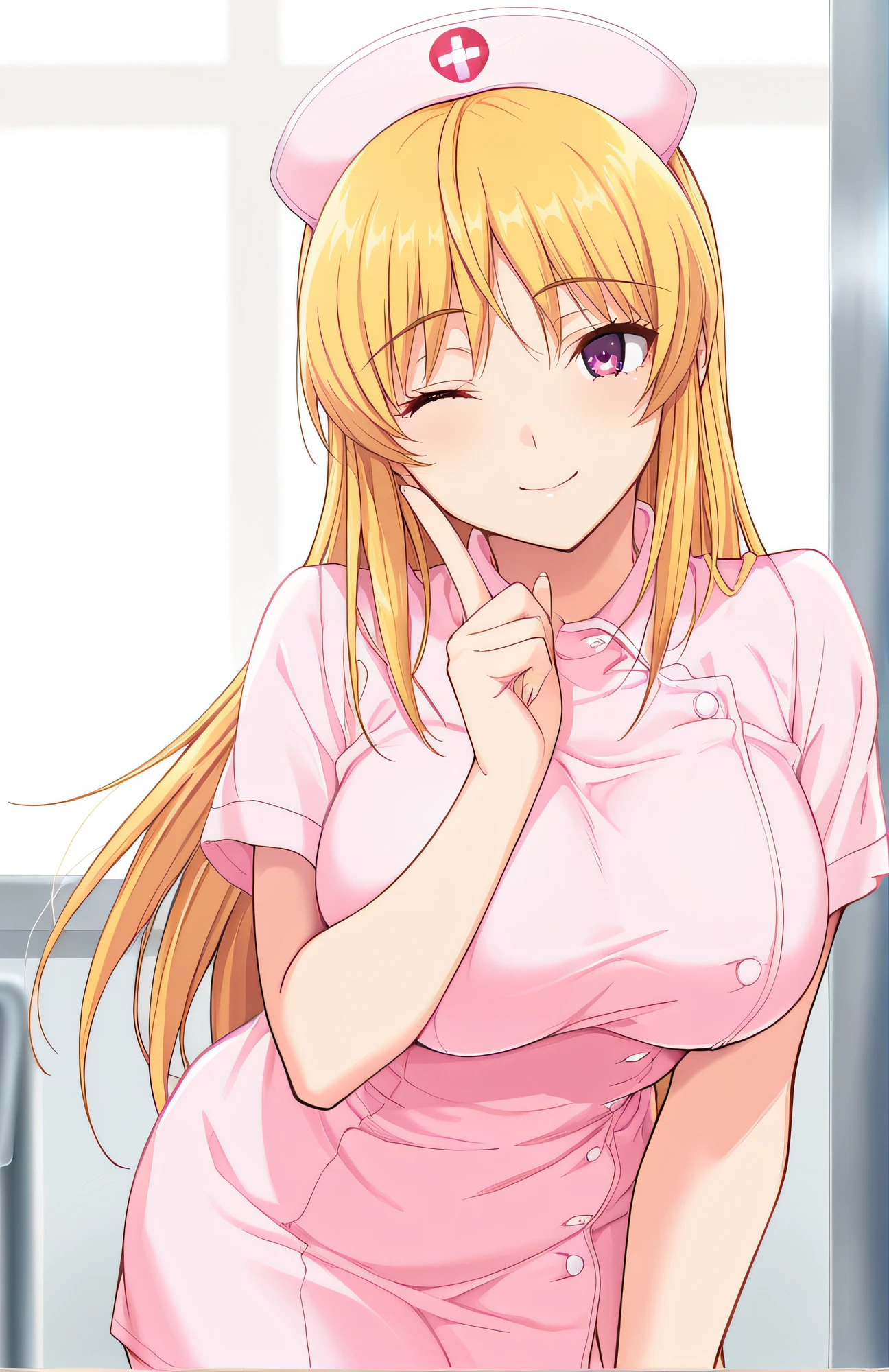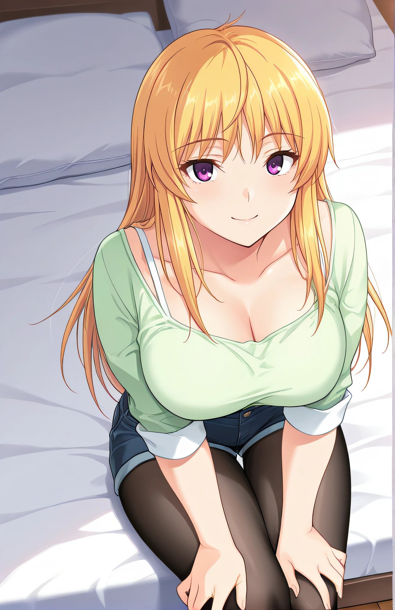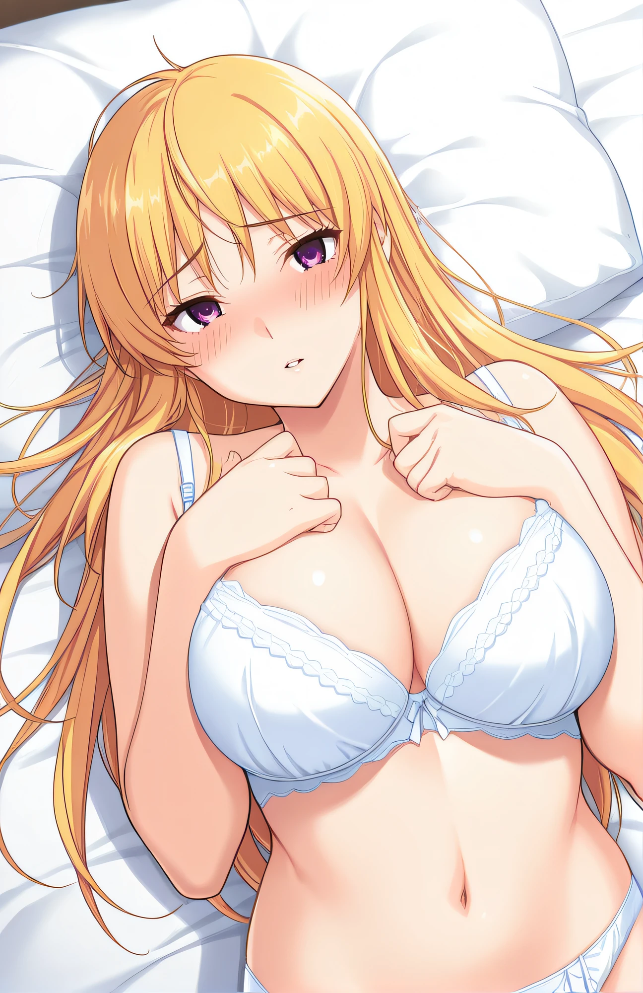 natsuki, blonde hair, ponytail, purple eyes, large breasts