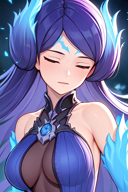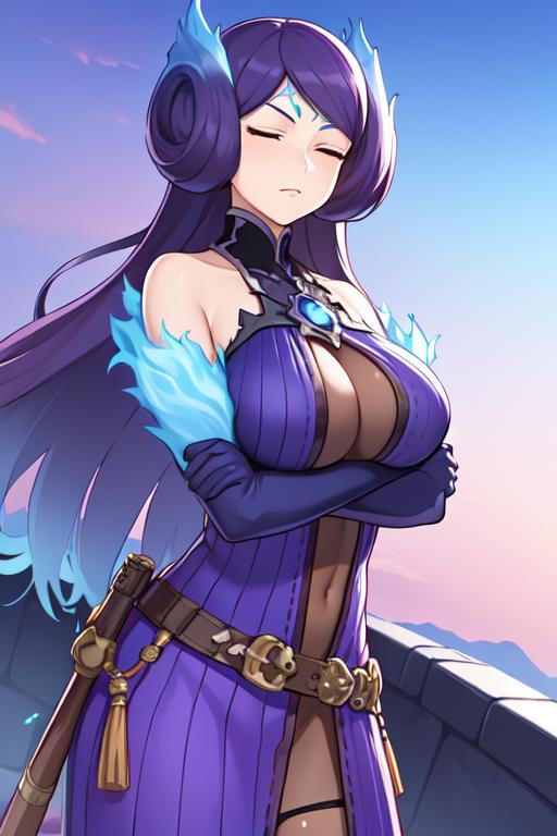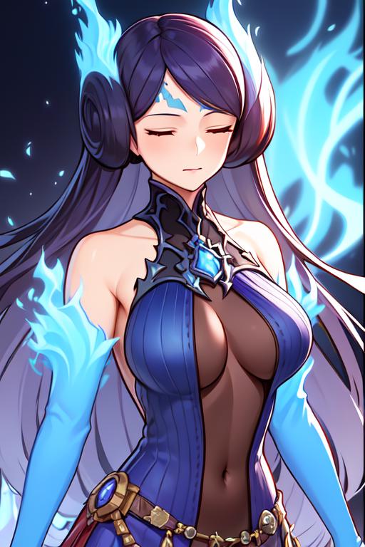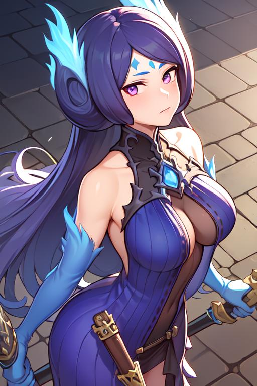 To prompt this character, enter "<lora:Brighidv1:strength>Brighid, purple long dress, jeweled collar, accessory belt, closed eyes, closed mouth,". To prompt her holding her whipswords, enter "dual wielding, holding swords," Can be prompted with a 3D aesthetic using "3D Model".