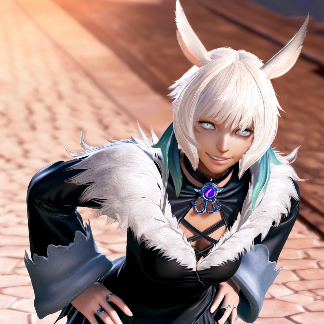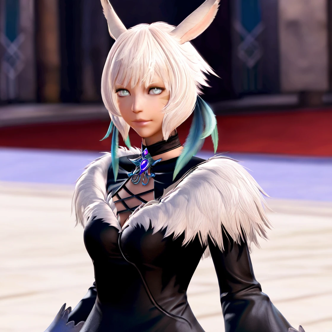 y'shtolasorceressdress, wide sleeves, black dress, fur trim, feather hair ornament
