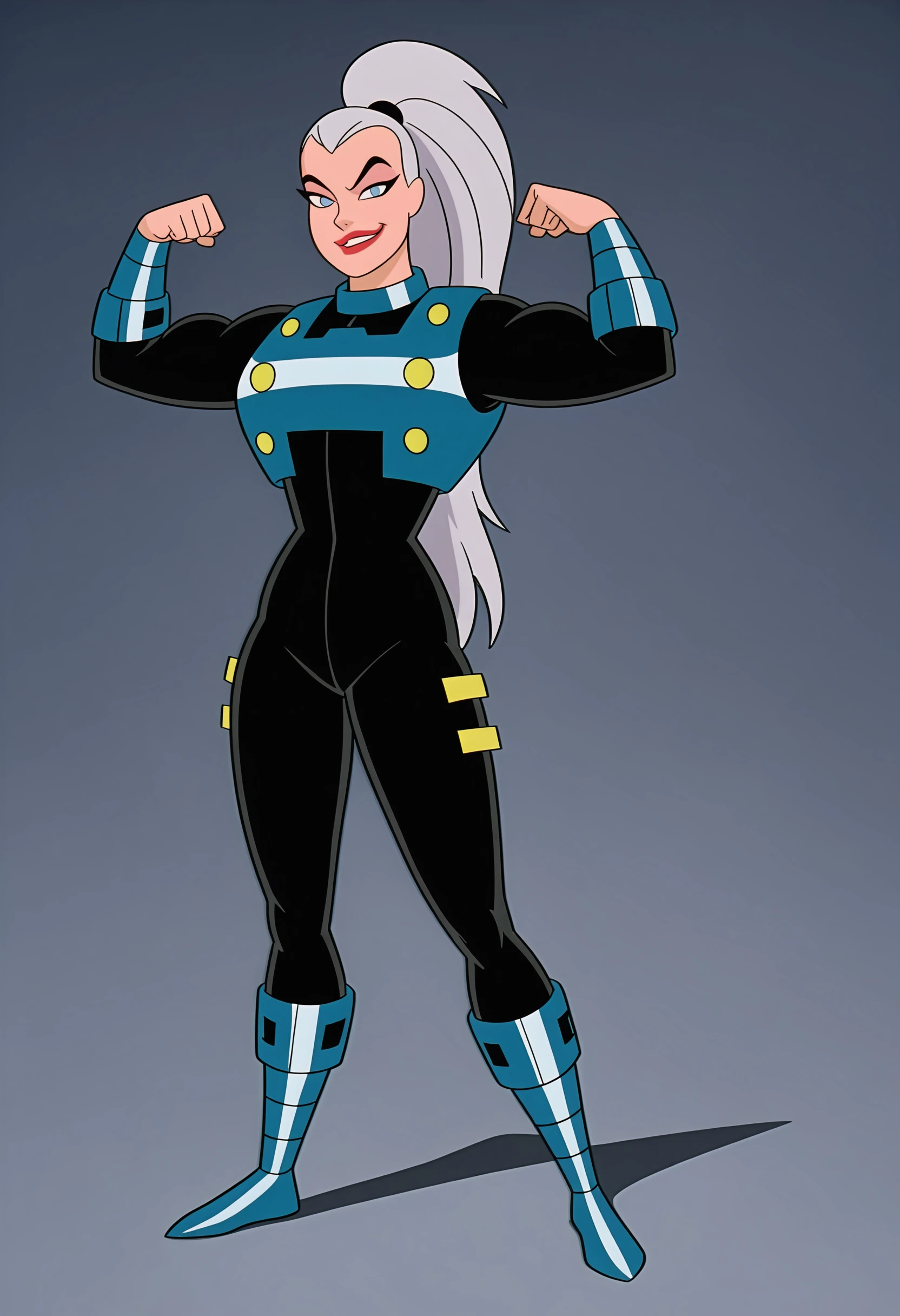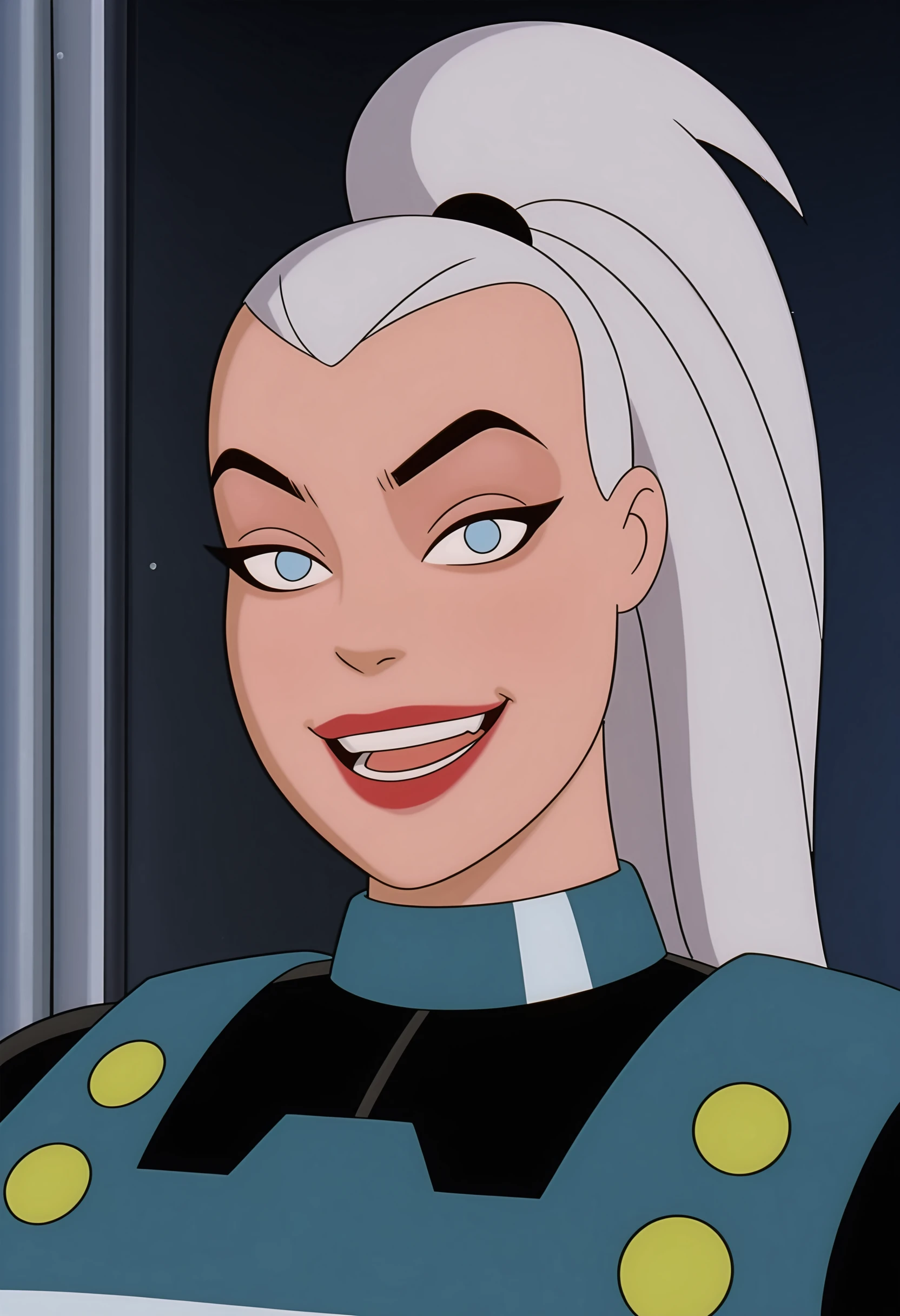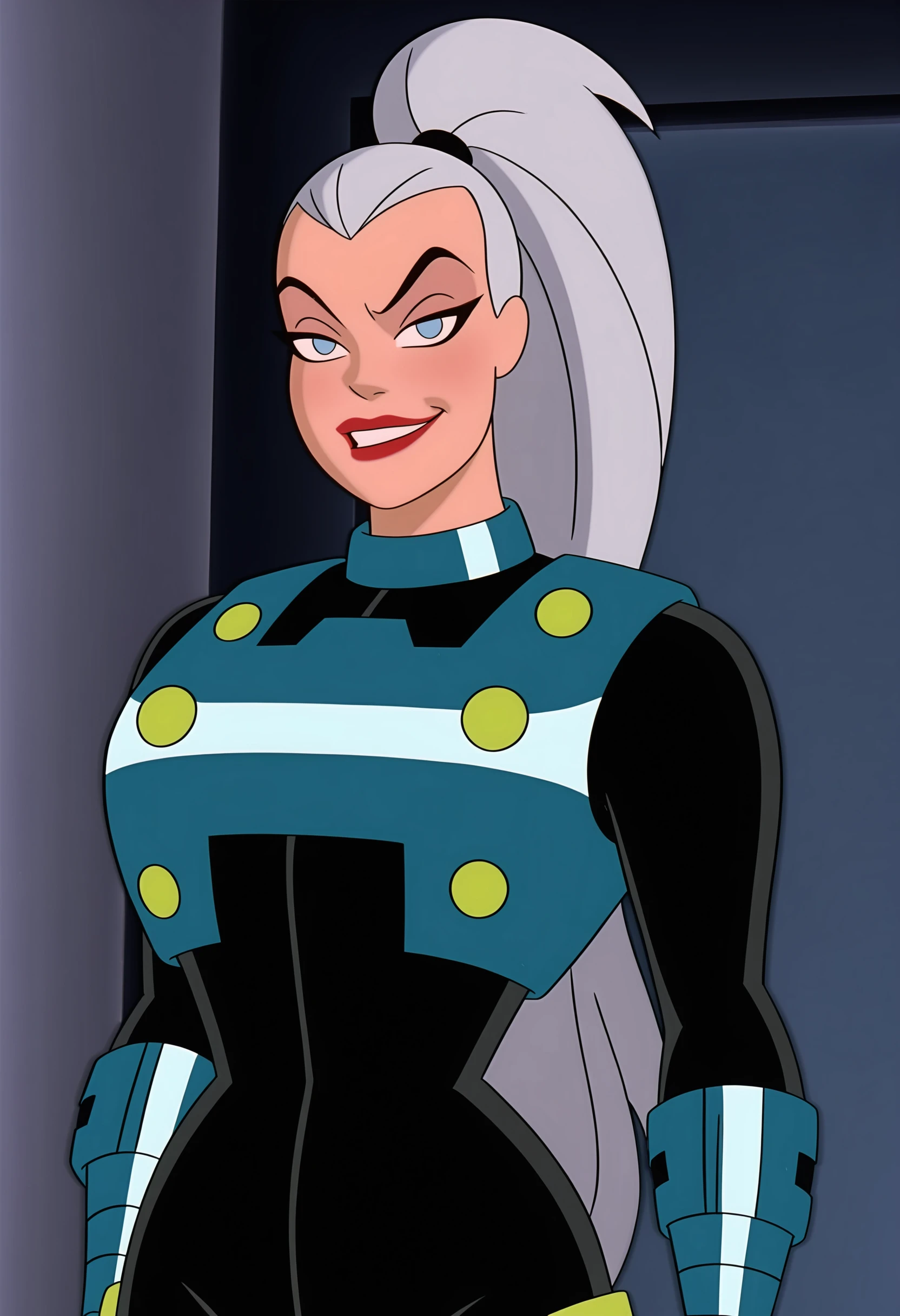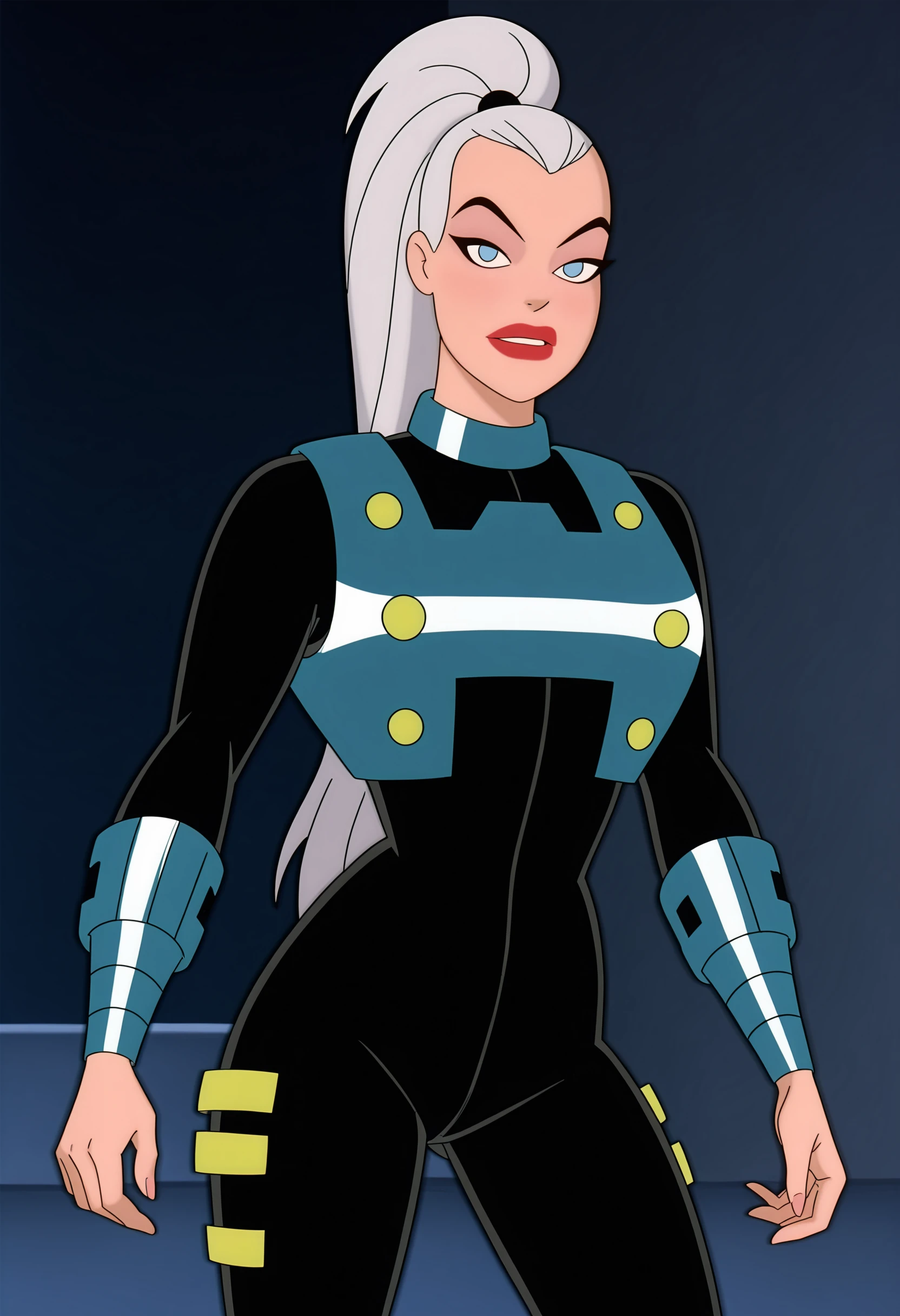 malilf, white hair, high ponytail, blue eyes, armor, bodysuit