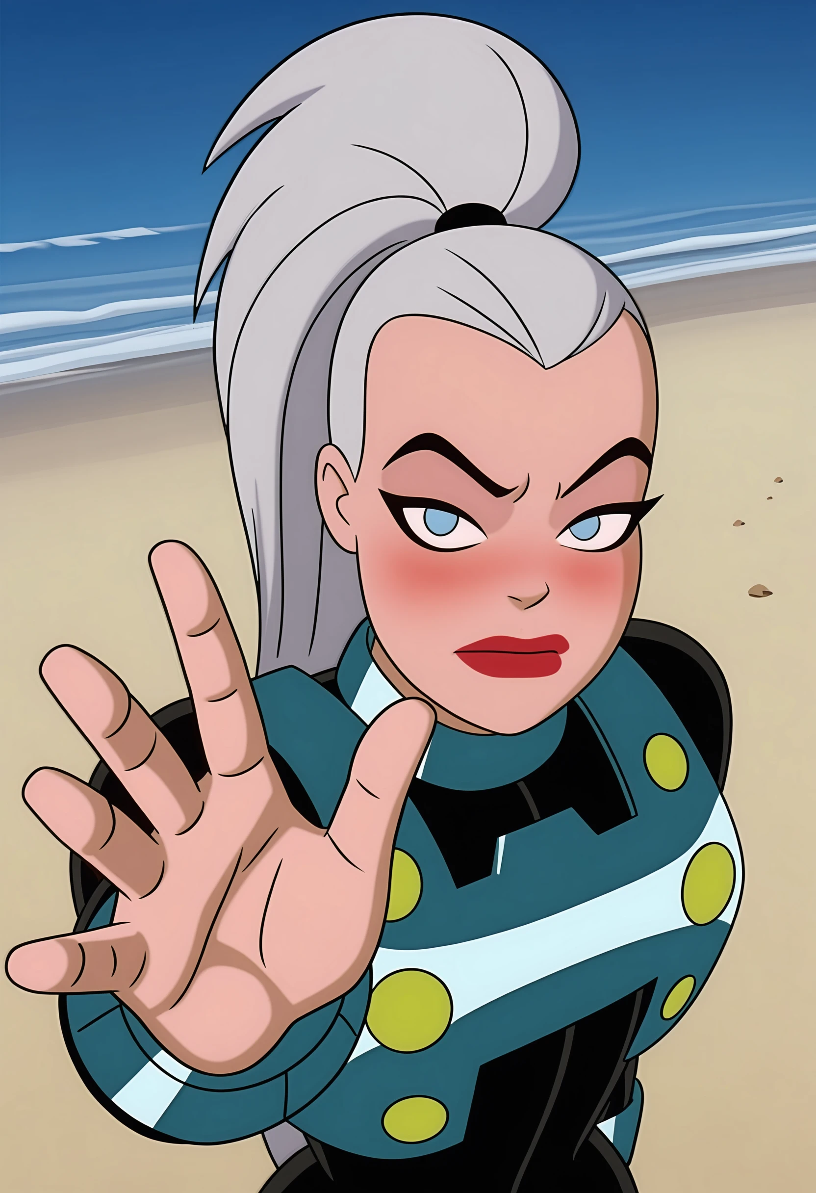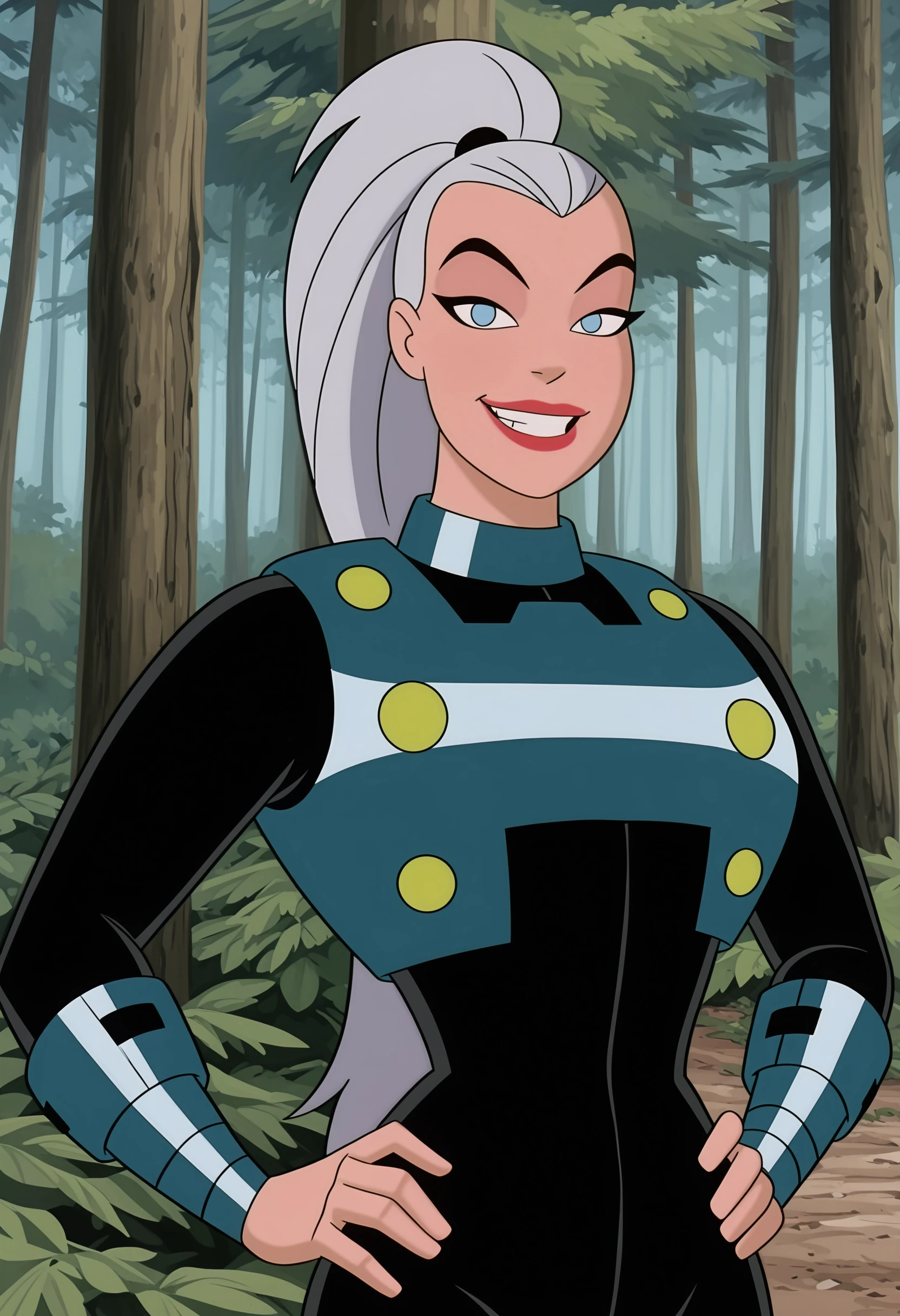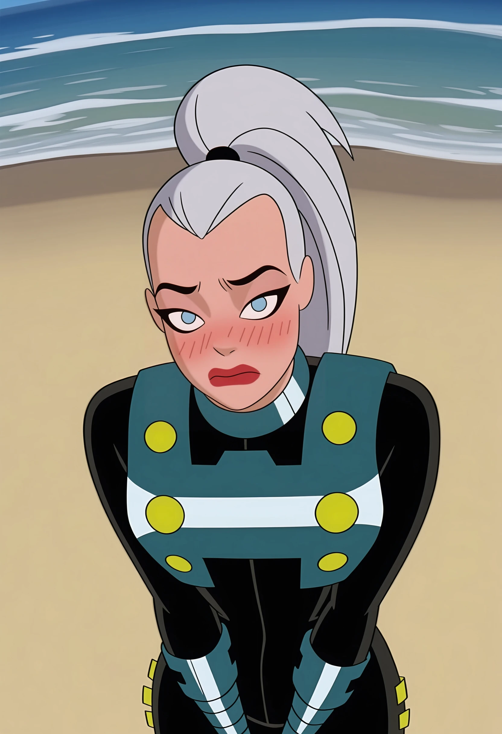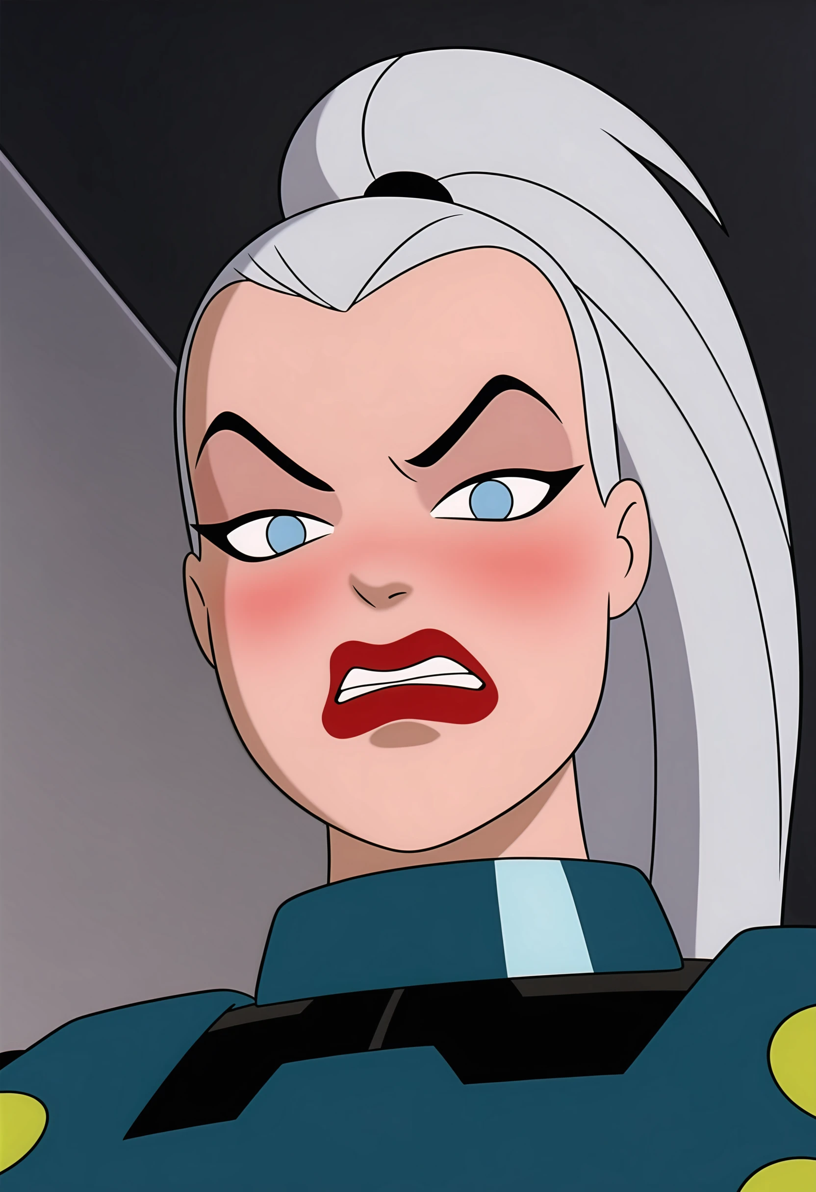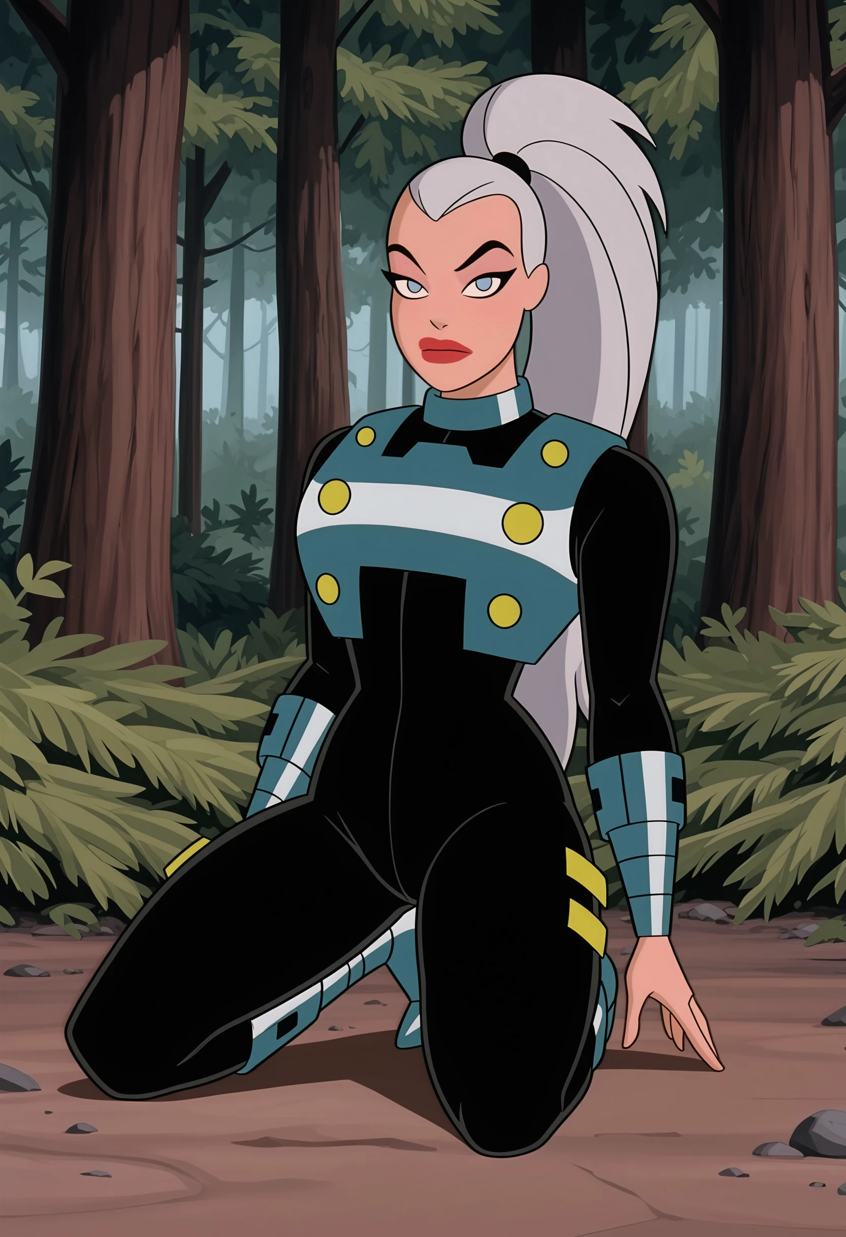 malilf, white hair, high ponytail, blue eyes, armor, bodysuit