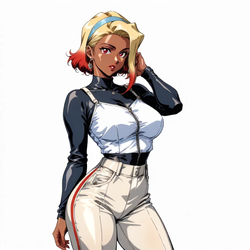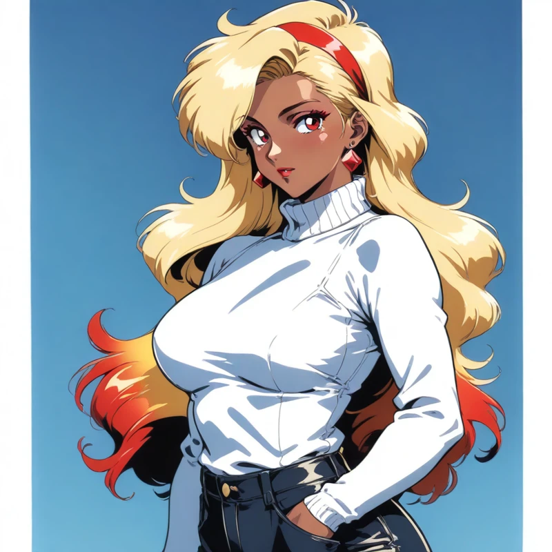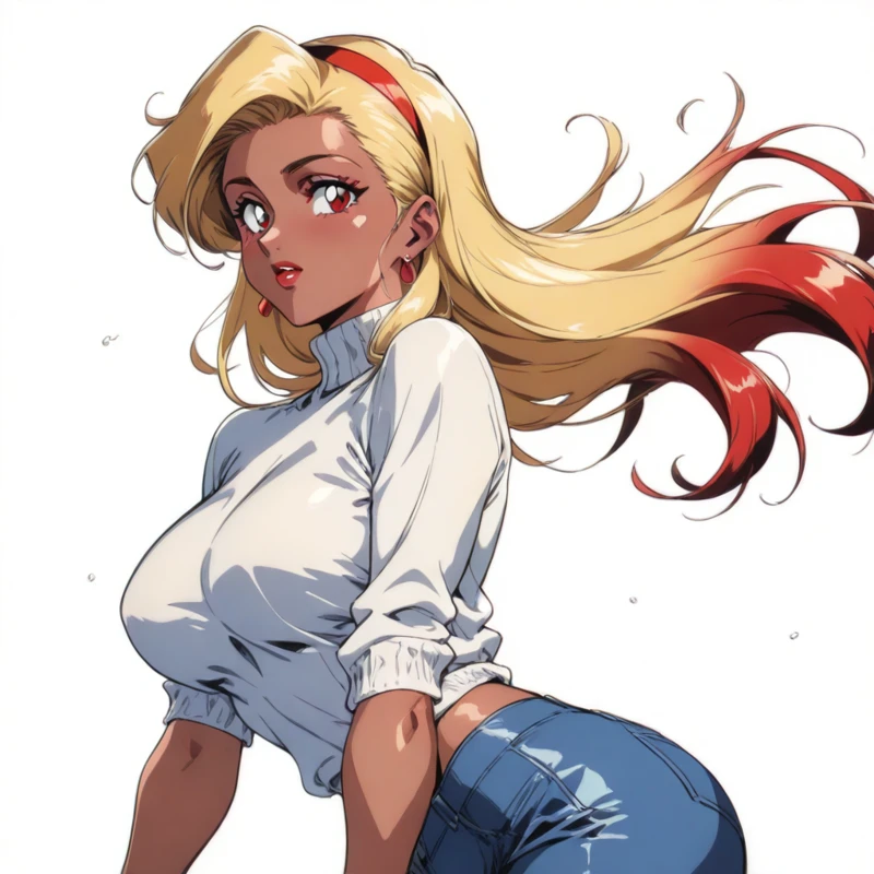 blonde hair, red eyes, gradient hair, tanned skin, large breasts,