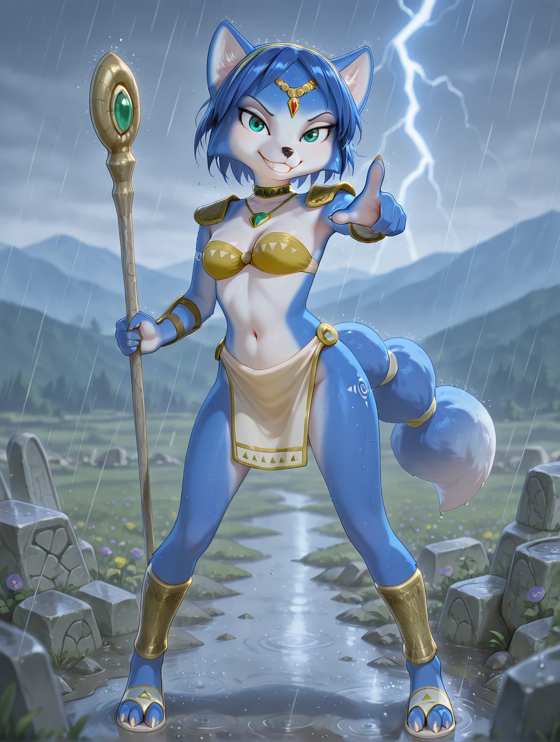 Important info: See my showcase images. Her accessories and attire can now be fully adjusted. Remove the accessory tags and put them in the negative prompt. Some accessories such as the anklet and sandals can be a bit more finicky than the others, generate a few extra images and these should disappear. Despite heavy use of images that show her feet clearly, she does not always have the correct number of toes, it is what it is I'm afraid. Extra tags that are useful for her feet include: paws, pawpads. "Petite" is useful to get her closer to the V1 proportions, since the proportions differ somewhat in this version. When the anklet and sandals are being finicky and you have removed most of everything else, the tag "????" can help.