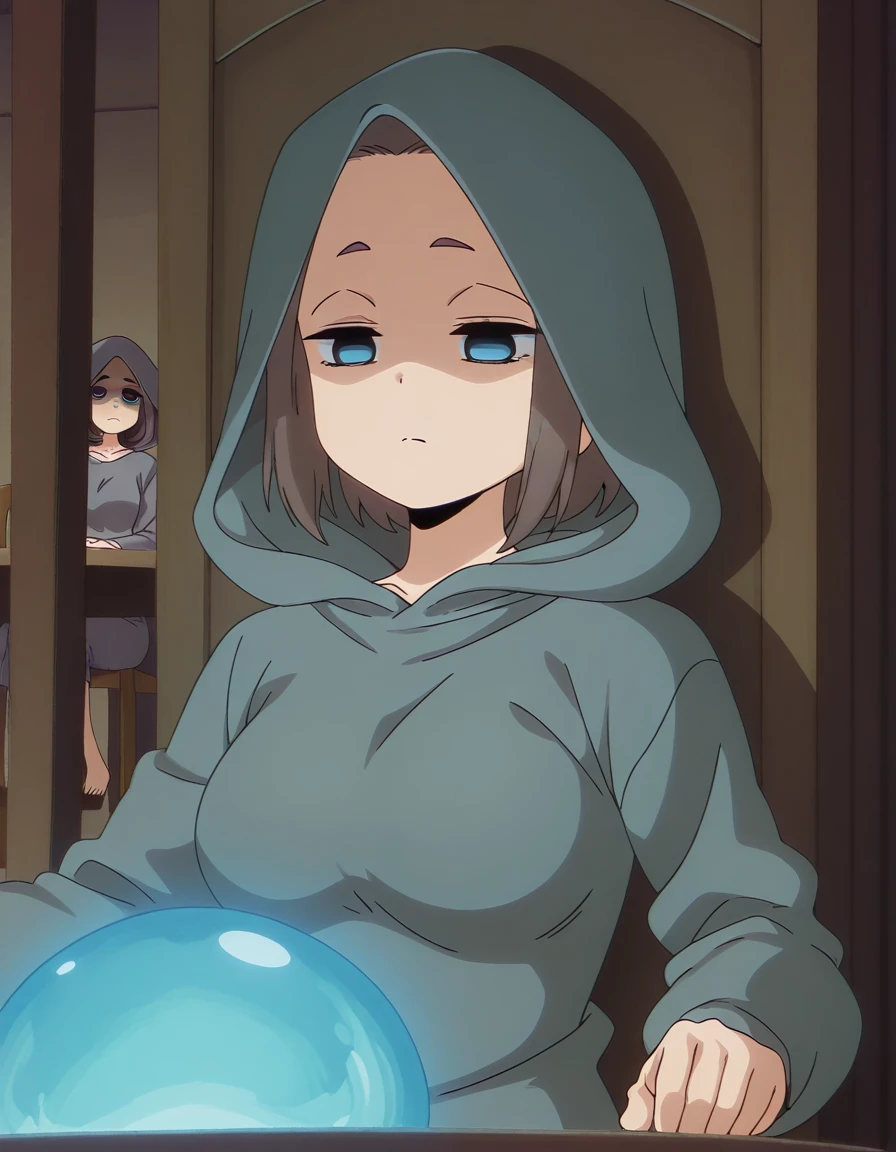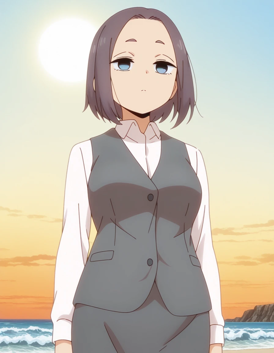 mona tsukishiro, short hair, blue eyes, brown hair, forehead, mature female, medium breasts, anime screencap