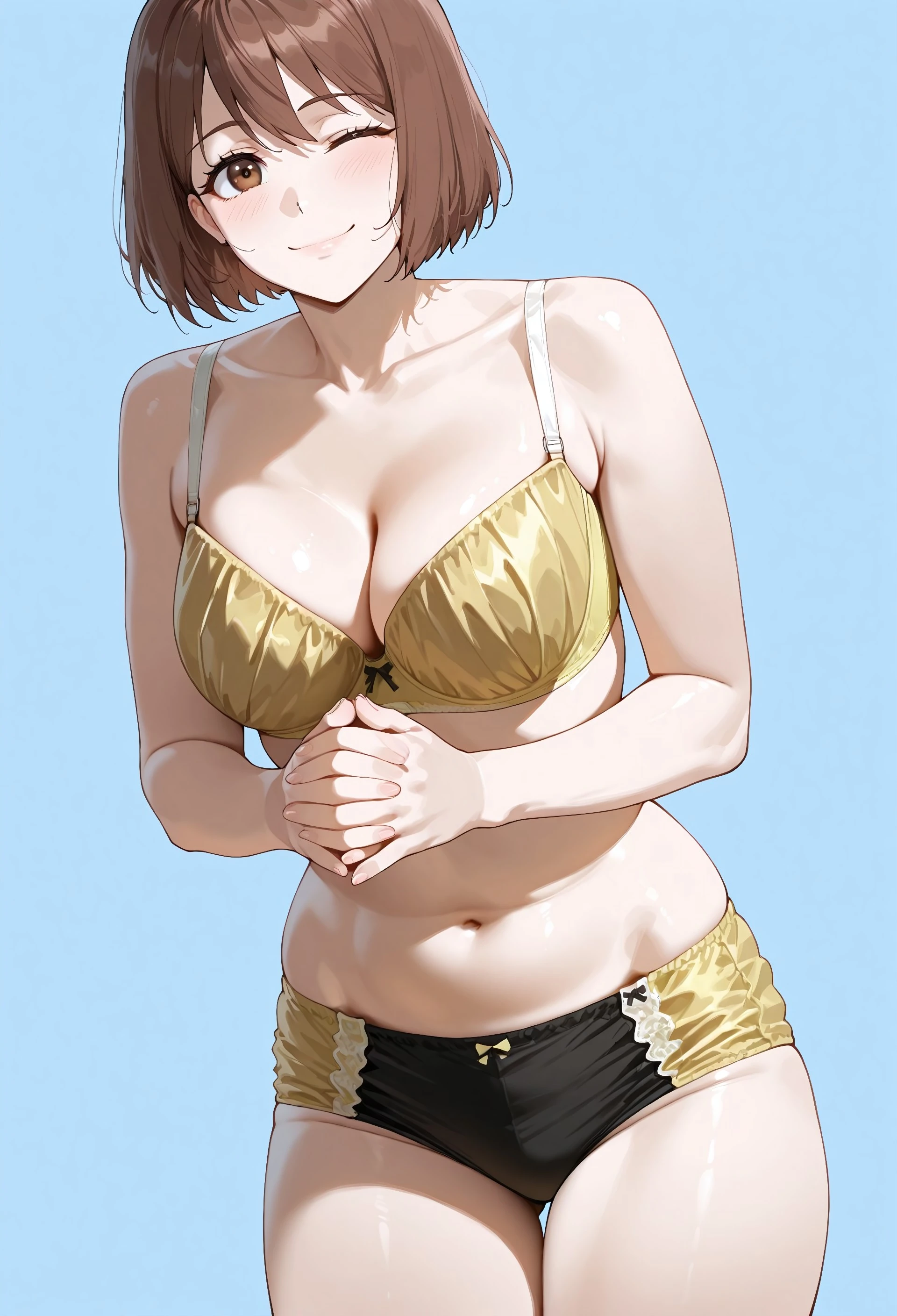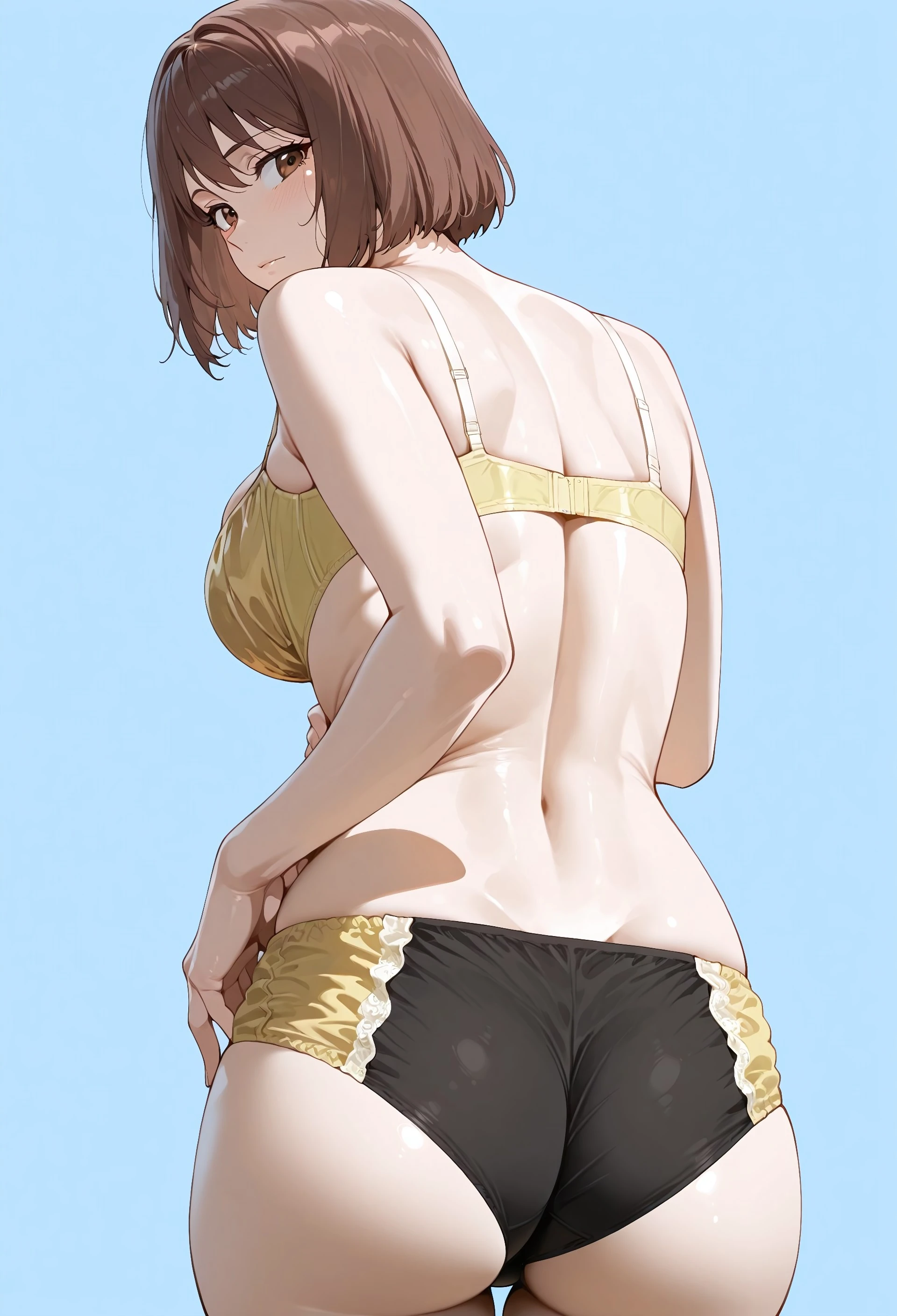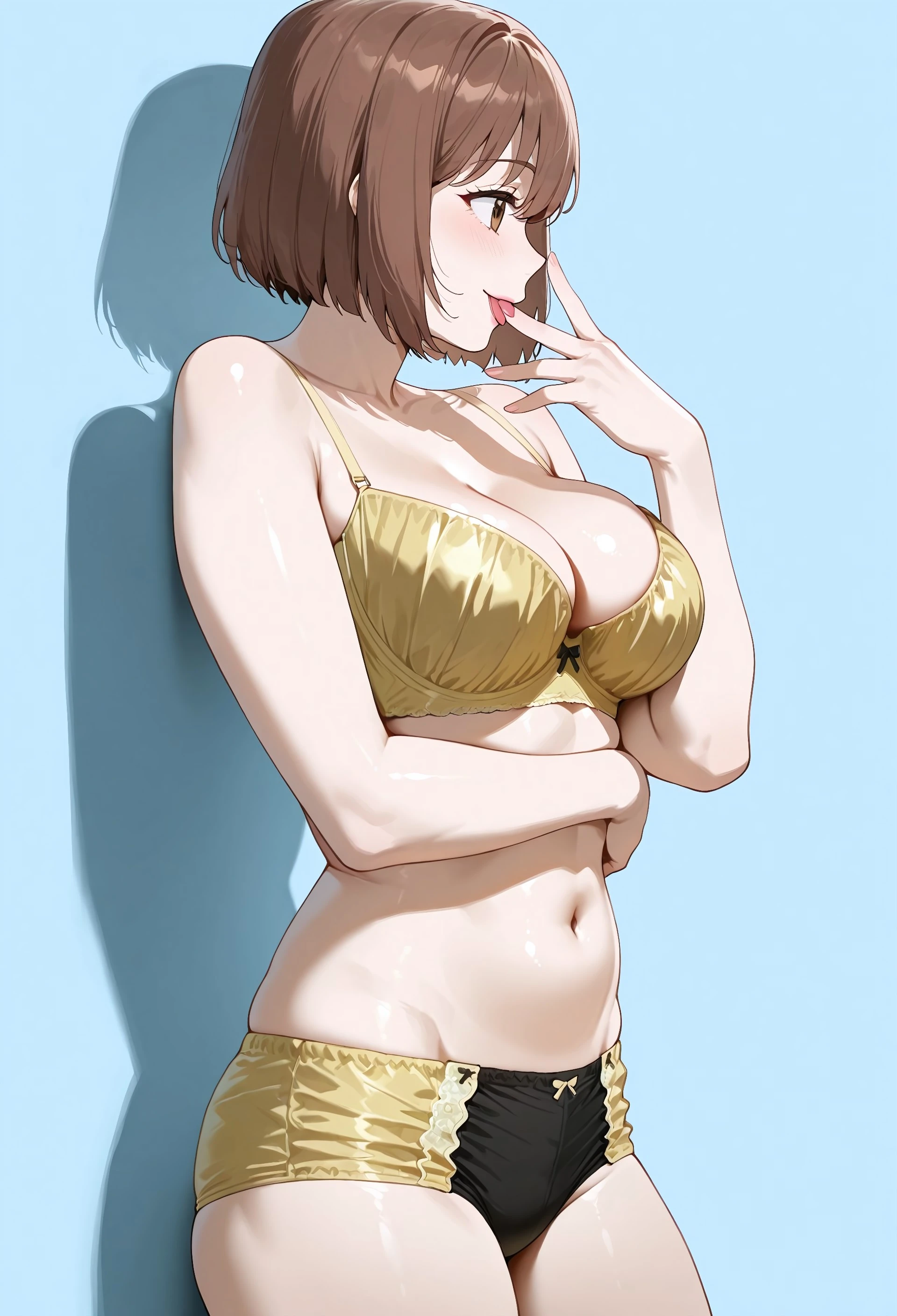 b1_y3_l1n, yellow bra, black panties, yellow lace panties