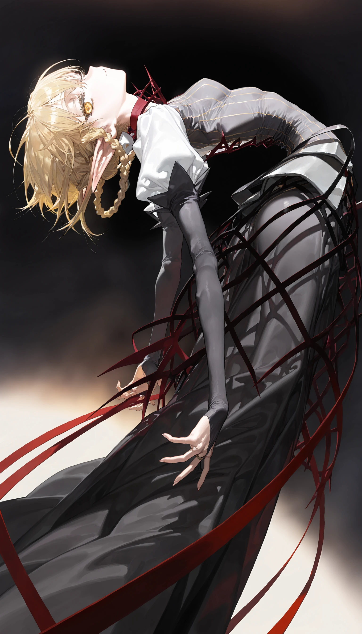 black dress ,juliet sleeves,bridal gauntlets , standing_on_platform,white high_heels, black halo,