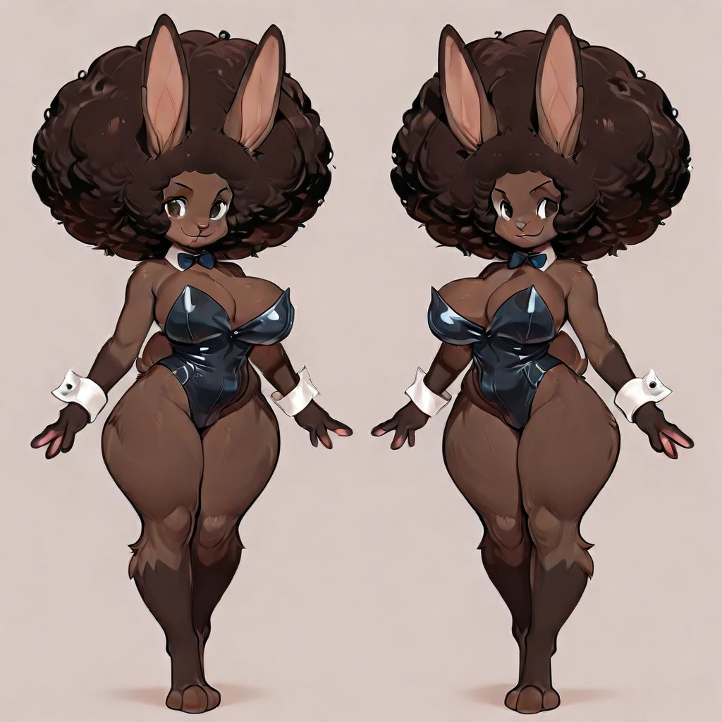 Choc1, Rabbit Furry, Furry Girl, Rabbit ears, brown body, bornw fur, brown eyes, Bunny Tail, Afro, Big Afro, Brown Hair, Fluffy