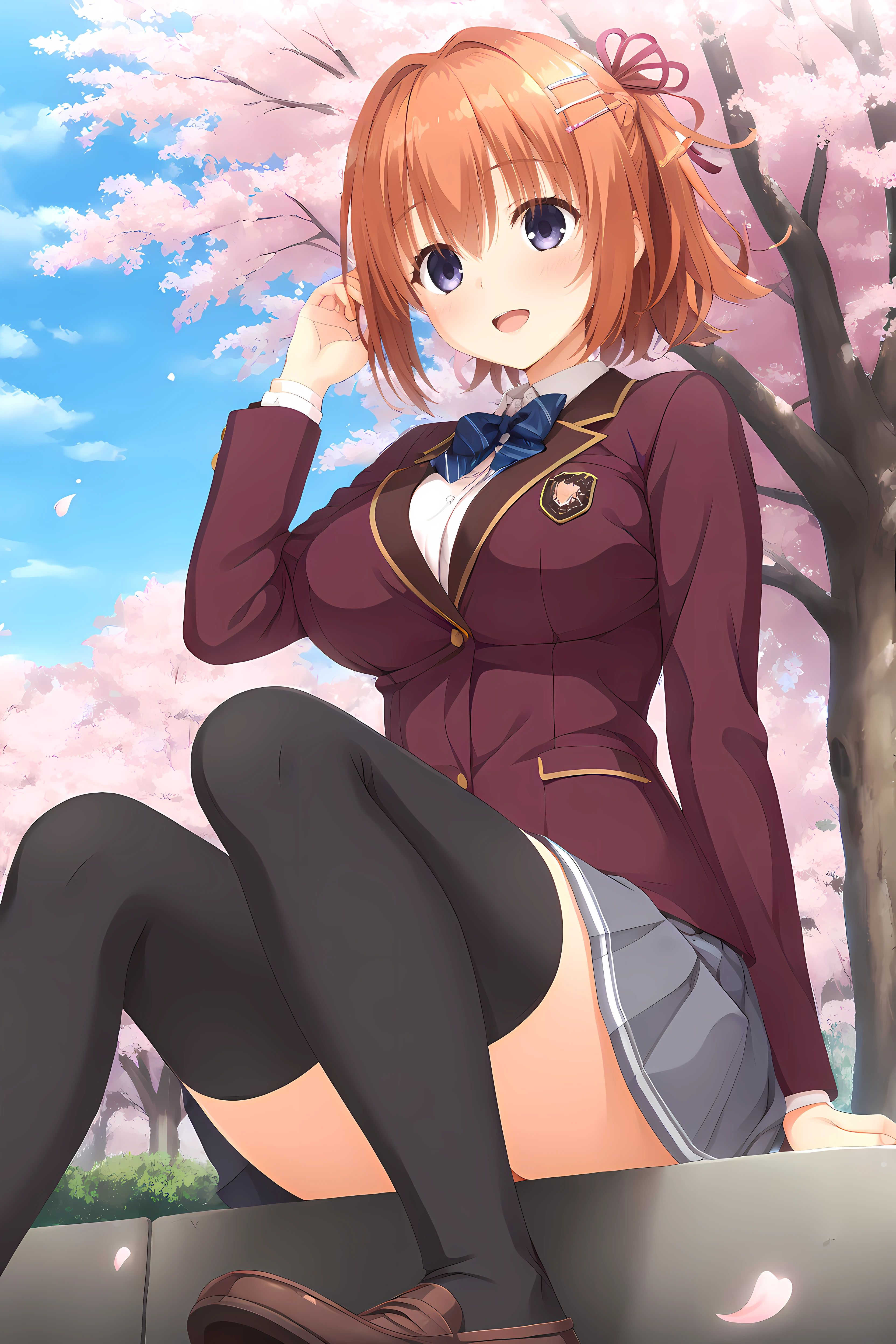 Base: Nozomi,orange hair,brown hair,purple eyes,blue eyes,bangs,hair between eyes,medium breasts,hair ornament,hairclip,