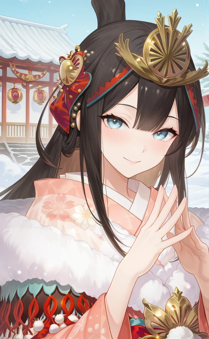 long hair,black hair,hair ornament,sidelocks,blue eyes