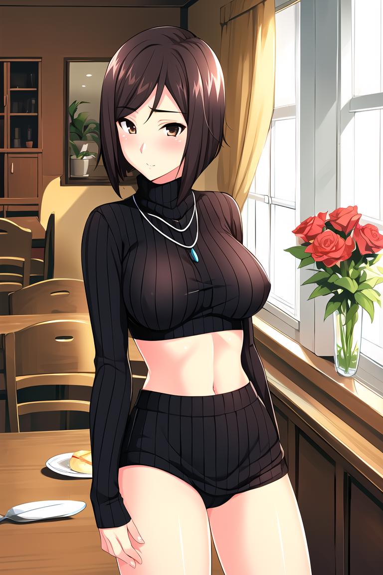 1girl, short hair, black hair, brown eyes