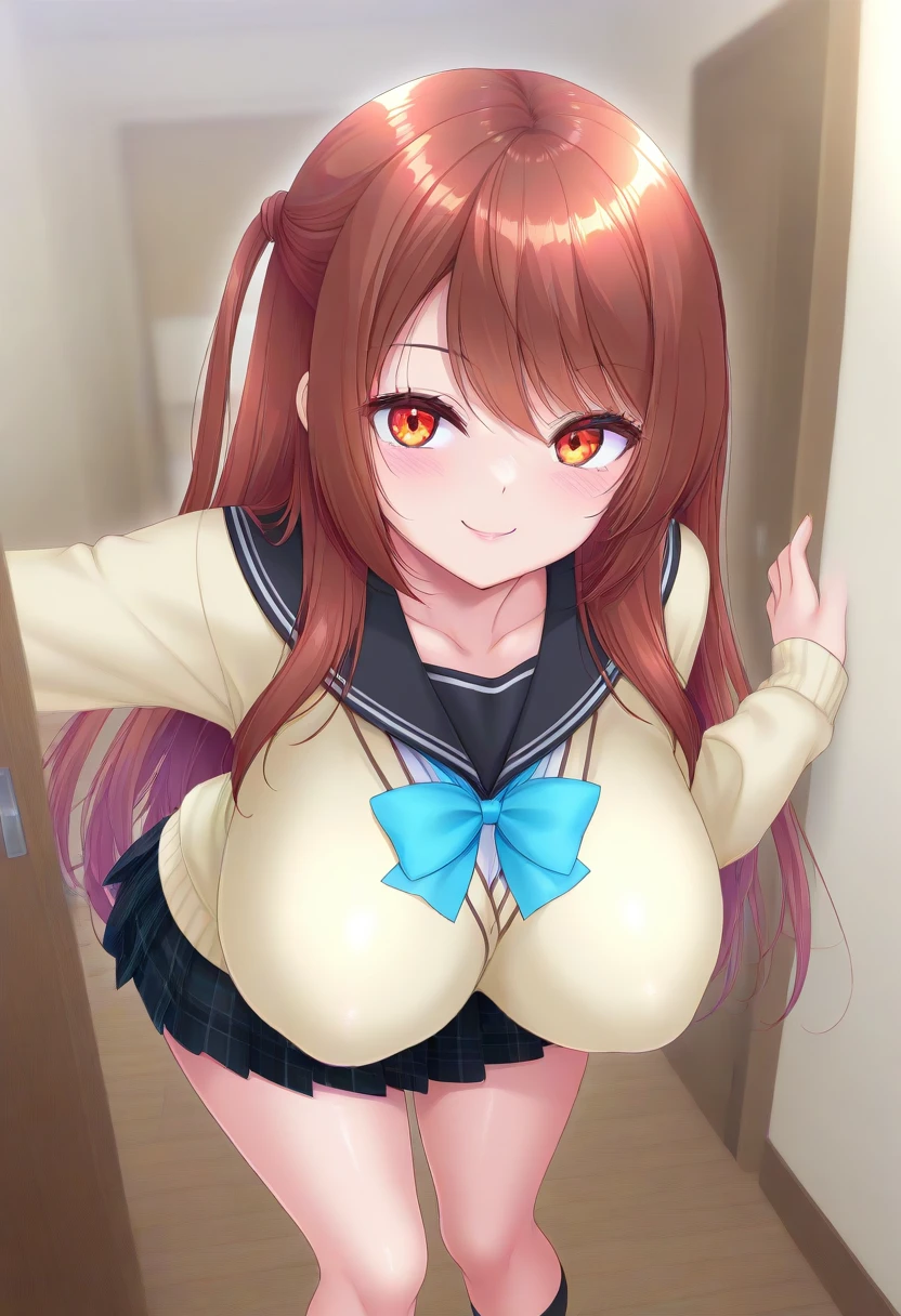 Recommend Prompt:Karen Kiriyama, amber eyes, brown hair, long hair, two side up, | red hair, | magenta hair, hair ornament,