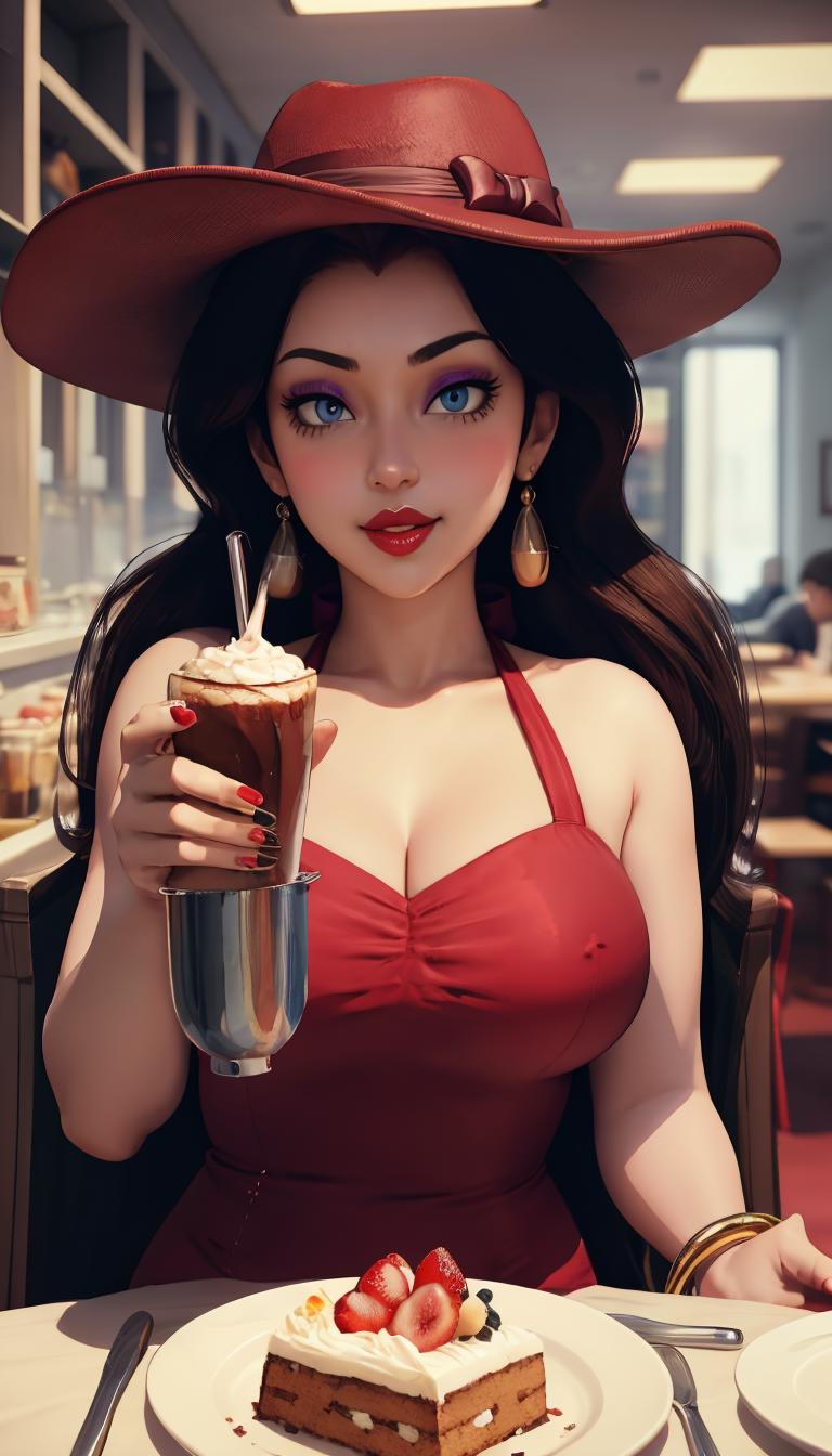 hoop earrings, jewelry,earrings,hat,dress,red dress,bracelet,cleavage,bangle,red headwear,long dress,witch hat,hat bow,This is a versatile LoRA model experiment with different weights for best results