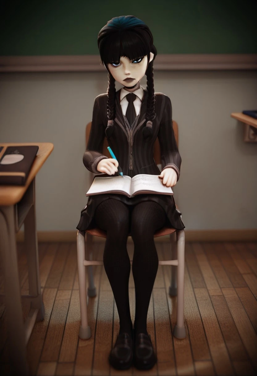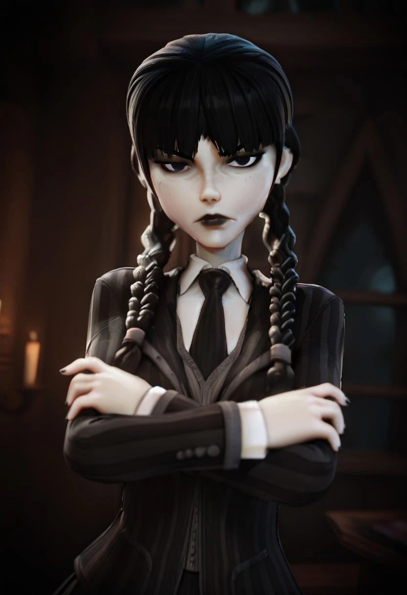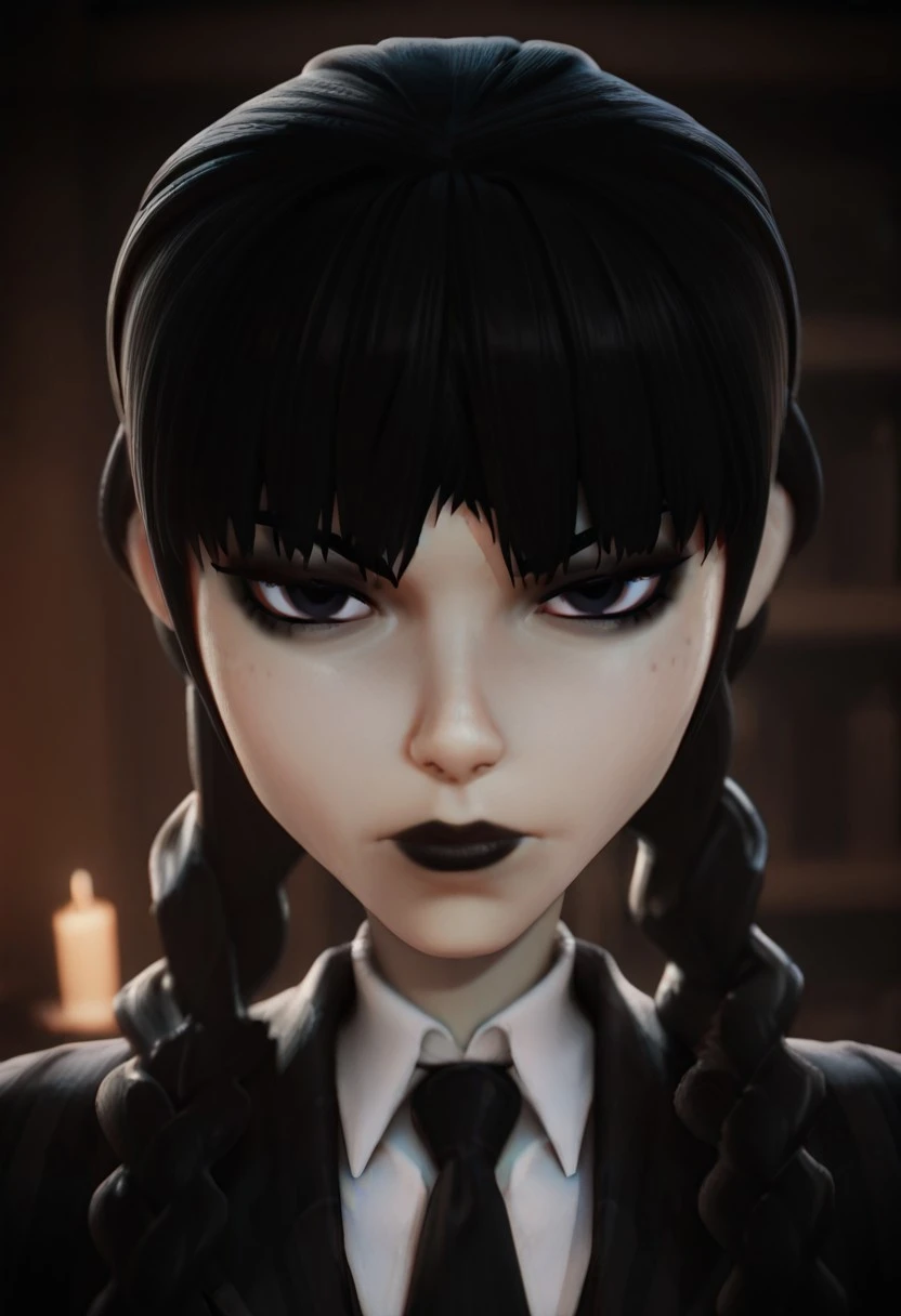 1girl, black hair, twin braids, pale skin, black lipstick, makeup,