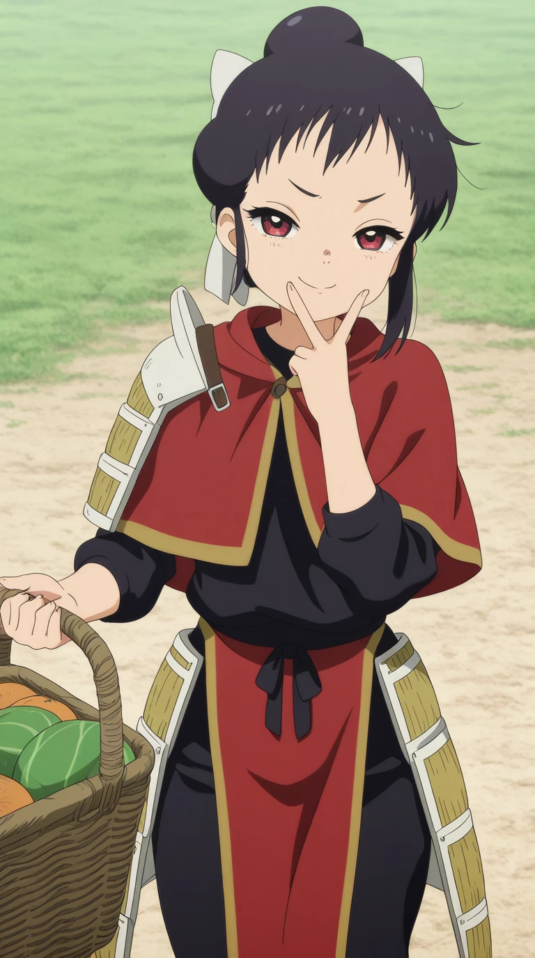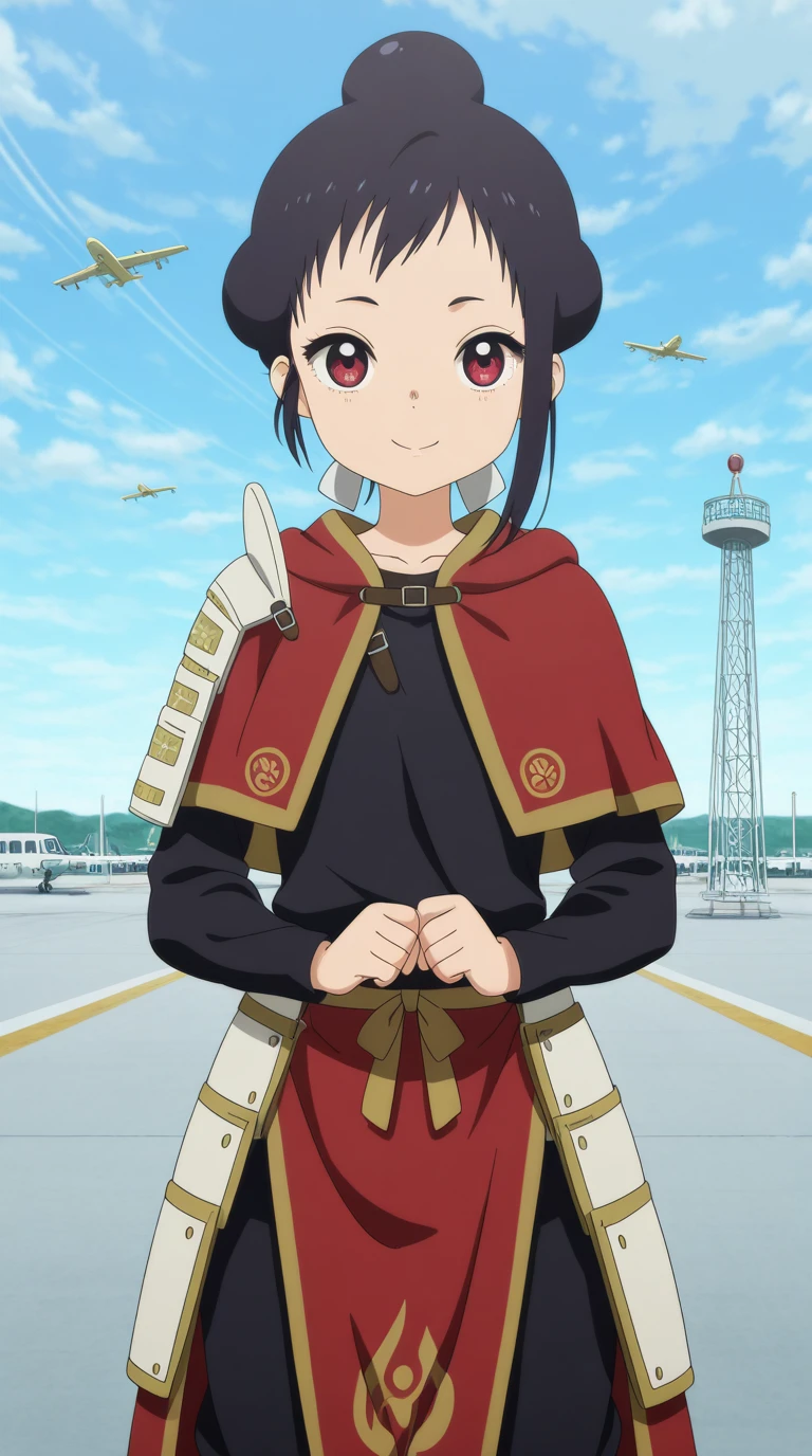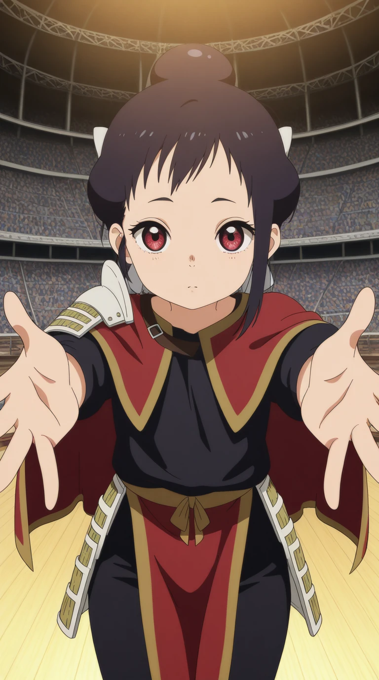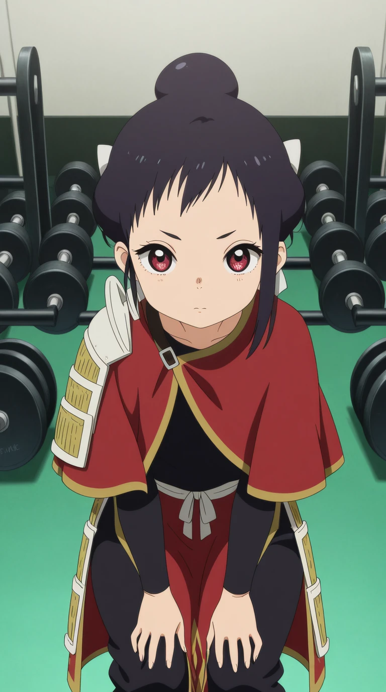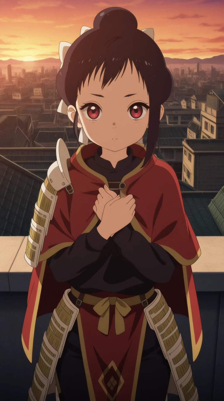 fumetsunoanatae hisame, short hair, black hair, red eyes, hair bun, single hair bun, anime screencap
