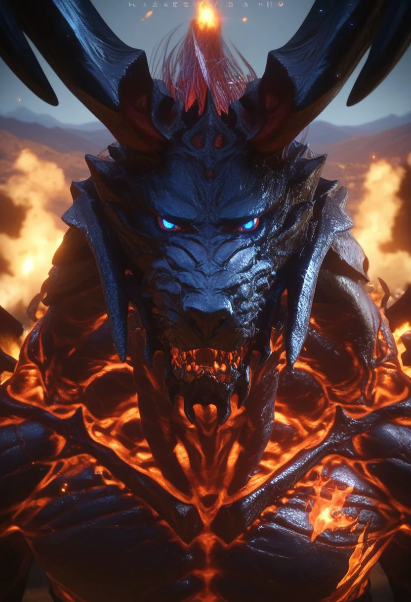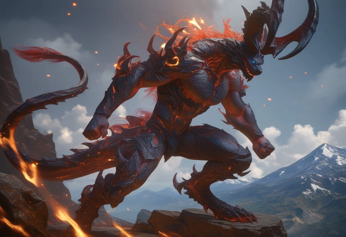 Fire Elemental, Tail, Demon, Blue Eyes, Black Body, Horns, Glowing Eyes