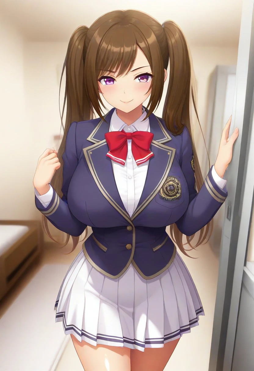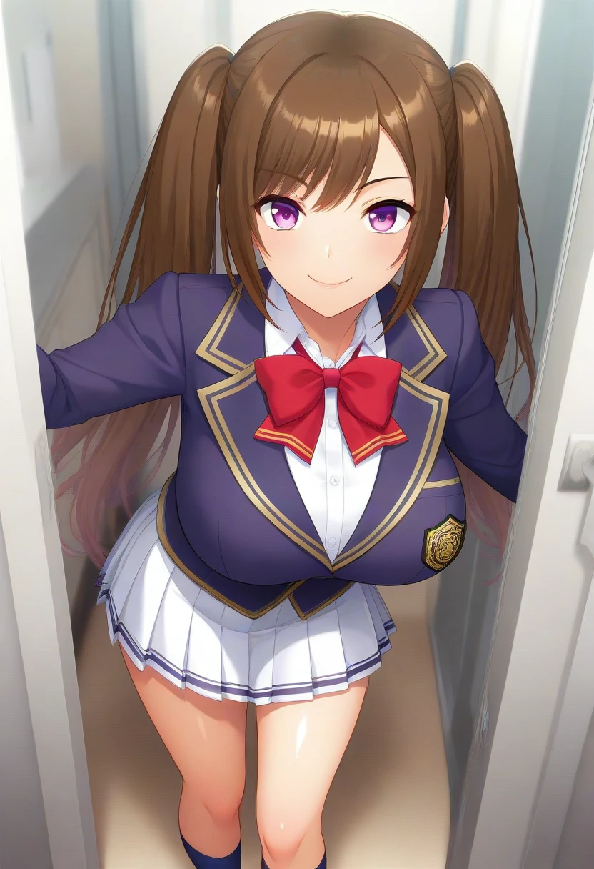 Ema Isezaki, purple eyes, brown hair, long hair, twintails,